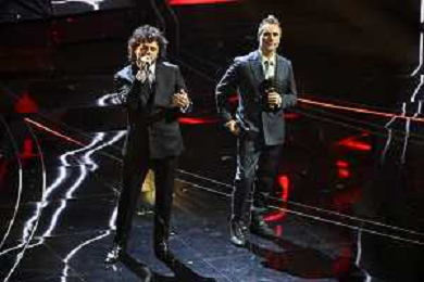 Festival Sanremo 2024 nella foto l'esibizione di Renga e Nek 74mo Festival della Canzone Italiana - Quinta Serata Teatro Ariston - Sanremo (IM) 10-02-2024 foto Roberto Garavaglia/agenzia Aldo Liverani sas/AGENZIA ALDO LIVERANI SAS