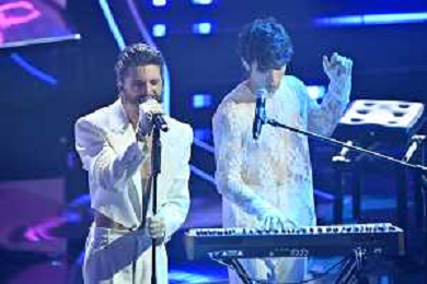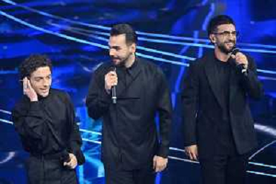 Festival Sanremo 2024 nella foto l'esibizione dei Santi Francesi 74mo Festival della Canzone Italiana - Quinta Serata Teatro Ariston - Sanremo (IM) 10-02-2024 foto Roberto Garavaglia/agenzia Aldo Liverani sas/AGENZIA ALDO LIVERANI SAS