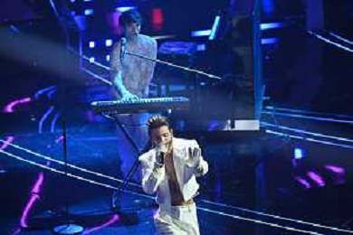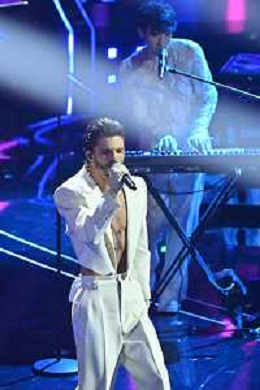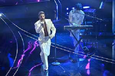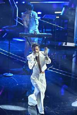 Festival Sanremo 2024 nella foto l'esibizione di Mahmood 74mo Festival della Canzone Italiana - Quinta Serata Teatro Ariston - Sanremo (IM) 10-02-2024 foto Roberto Garavaglia/agenzia Aldo Liverani sas/AGENZIA ALDO LIVERANI SAS