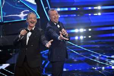 Festival Sanremo 2024 nella foto Amadeus e Fiorello 74mo Festival della Canzone Italiana - Quinta Serata Teatro Ariston - Sanremo (IM) 10-02-2024 foto Roberto Garavaglia/agenzia Aldo Liverani sas/AGENZIA ALDO LIVERANI SAS