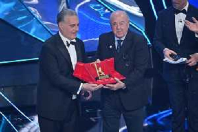 Festival Sanremo 2024 nella foto Pippo Balistreri, direttore di palco, riceve il premio Città di Sanremo 74mo Festival della Canzone Italiana - Quinta Serata Teatro Ariston - Sanremo (IM) 10-02-2024 foto Roberto Garavaglia/agenzia Aldo Liverani sas/AGENZIA ALDO LIVERANI SAS