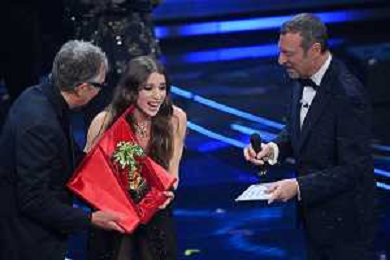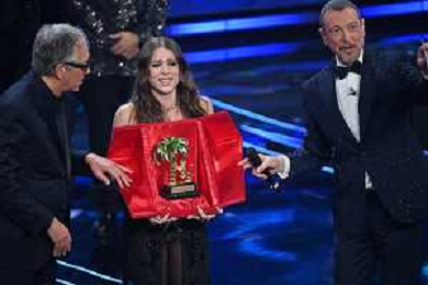 Festival Sanremo 2024 nella foto Angelina Mango rioceve il Premio Giancarlo Bigazzi per la miglior composizione musicale 74mo Festival della Canzone Italiana - Quinta Serata Teatro Ariston - Sanremo (IM) 10-02-2024 foto Roberto Garavaglia/agenzia Aldo Liverani sas