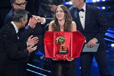 Festival Sanremo 2024 nella foto Angelina Mango vince il Festival di Sanremo 2024 74mo Festival della Canzone Italiana - Quinta Serata Teatro Ariston - Sanremo (IM) 10-02-2024 foto Roberto Garavaglia/agenzia Aldo Liverani sas/AGENZIA ALDO LIVERANI SAS