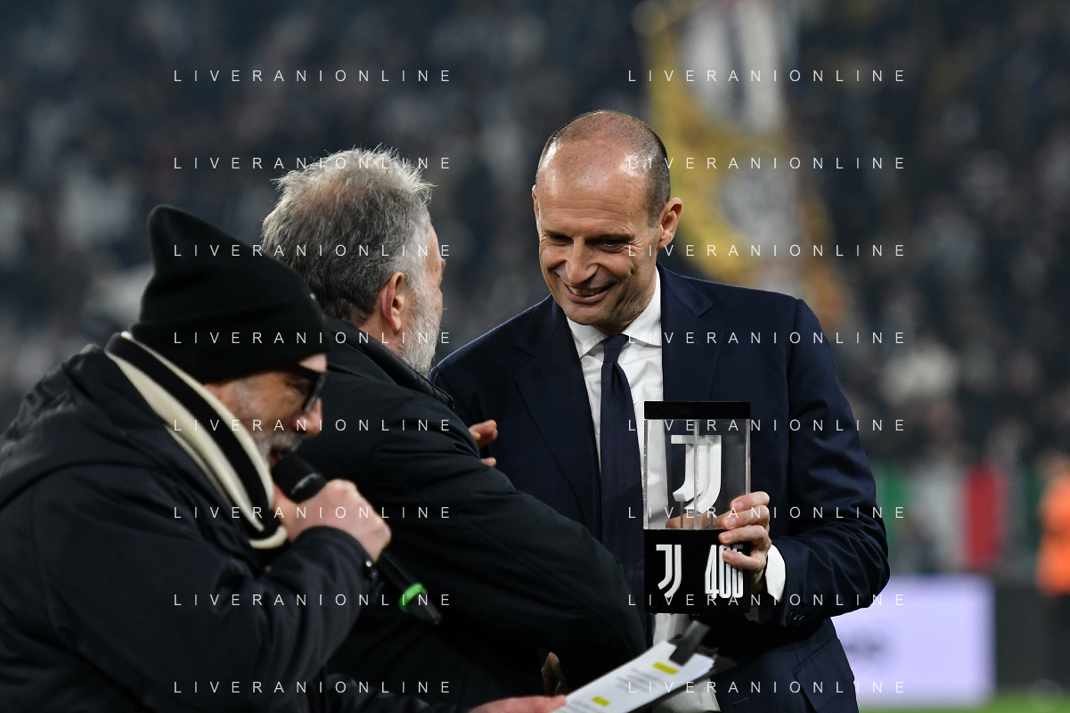 Torino 12.02.2024 Allianz Stadium @Manuela Viganti/Ag. Aldo Liverani sas Juventus vs Udinese Campionato Calcio Serie A TIM 2023/2024 24a giornata Nella foto: massimiliano allegri premiato per le 400 panchine alla juventus