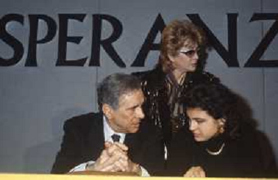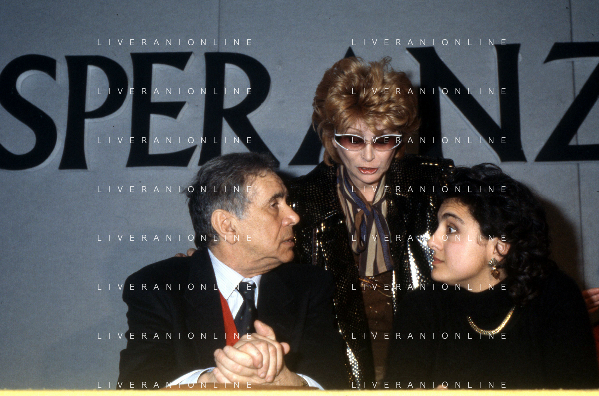 DIAP-RETROPETTIVA MIRANDA MARTINO ATTRICE E CANTANTE NELLA FOTO N. ADRIANI CON ROCCO MARTINO E MIRANDA MARTINO A MILANO NELL'ANNO 1987 AG ALDO LIVERANI SAS