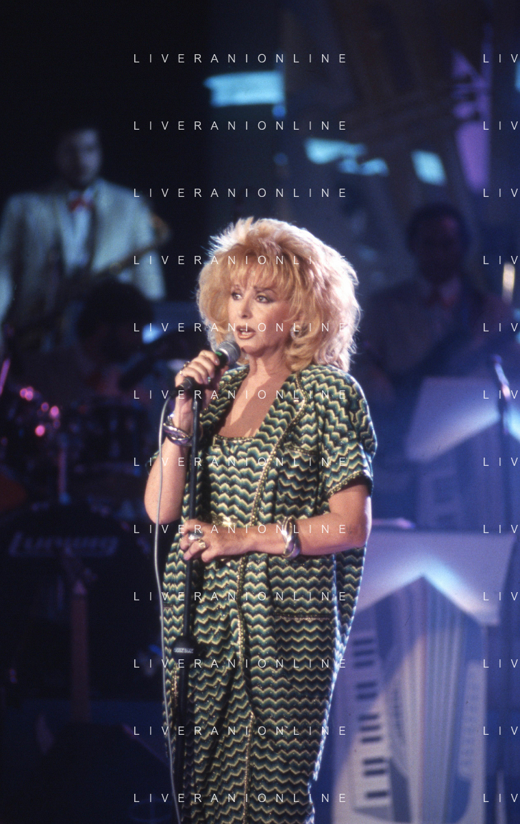 DIAP-RETROPETTIVA MIRANDA MARTINO ATTRICE E CANTANTE NELLA FOTO DOMENICO MODUGNO E MIRANDA MARTINO A MILANO NELL'ANNO 1987 AG ALDO LIVERANI SAS