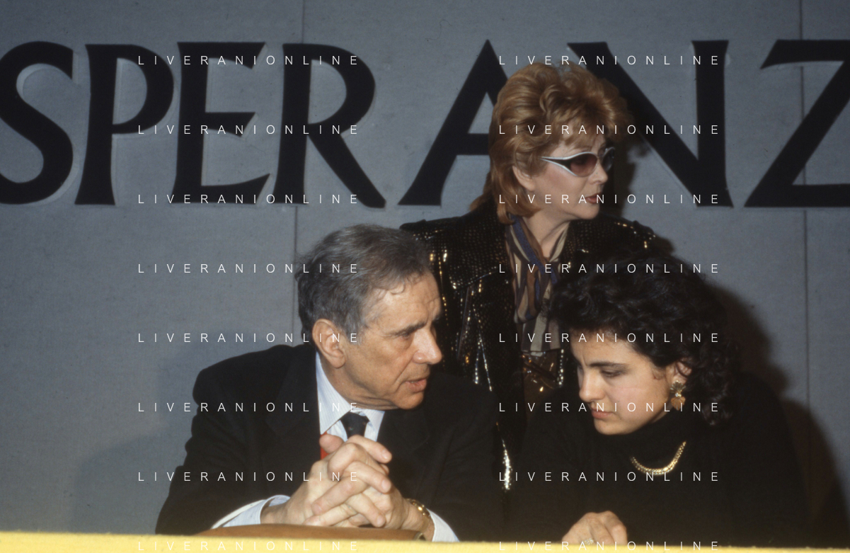 DIAP-RETROPETTIVA MIRANDA MARTINO ATTRICE E CANTANTE NELLA FOTO ENZO TORTORA CON PATRIZIA VILLA E MIRANDA MARTINO A MILANO NELL'ANNO 1987 AG ALDO LIVERANI SAS