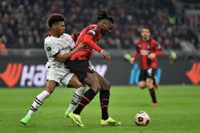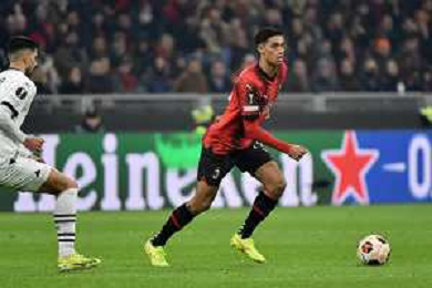 Milan vs Rennes nella foto Desirè Douè (Rennes) e Rafael Leao (Milan) Milano 15-02-2024 Stadio Giuseppe Meazza - San Siro UEFA Europa League - play-off gara di andata foto Roberto Garavaglia/Agenzia Aldo Liverani sas/AGENZIA ALDO LIVERANI SAS