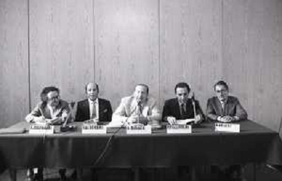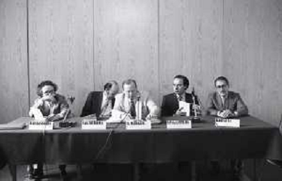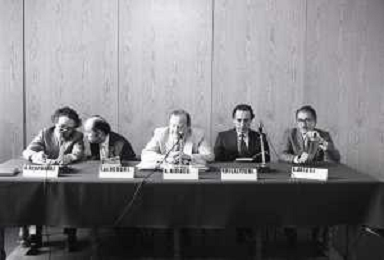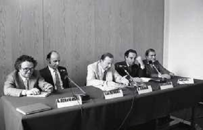 NEG- RETROSPETTIVA PAOLO PILLITTERI SINDACO DI MILANO E POLITICO PARTITO SOCIALISTA ITALIANO NELLA FOTO ATTILIO SCHEMMARI-FRANCESCO ALBERONI-GIANNI BISIACH-PAOLO PILLITTERI E ALDO ANIASI ALLA PRESENTAZIONE DEL LIBRO DI ALDO ANIASI NELL'ANNO 1987 A MILANO AG ALDO LIVERANI SAS