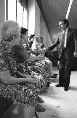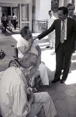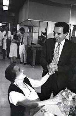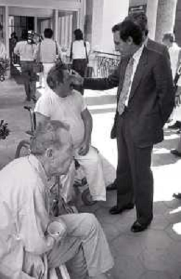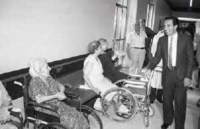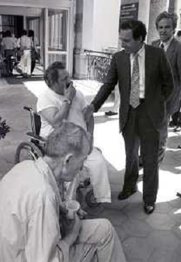 NEG- RETROSPETTIVA PAOLO PILLITTERI SINDACO DI MILANO E POLITICO PARTITO SOCIALISTA ITALIANO NELLA FOTO PAOLO PILLITTERI SINDACO DI MILANO A MLANO NELL'ANNO 1988 NEL MESE DI AGOSTO IN VISITA AL PIO ALBERGO TRIVULZIO AG ALDO LIVERANI SAS