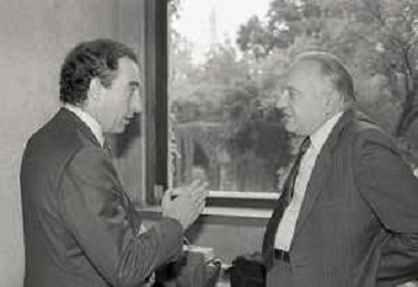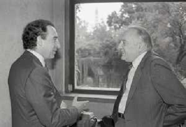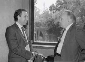 NEG- RETROSPETTIVA PAOLO PILLITTERI SINDACO DI MILANO E POLITICO PARTITO SOCIALISTA ITALIANO NELLA FOTO PAOLO PILLITTERI SINDACO DI MILANO A MLANO NELL'ANNO 1988 CON ADOLFO BERIA D'ARGENTINE AG ALDO LIVERANI SAS