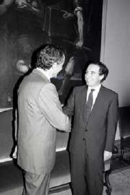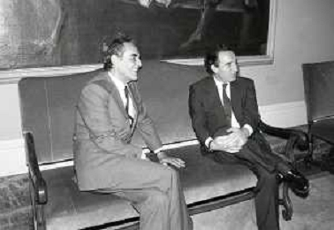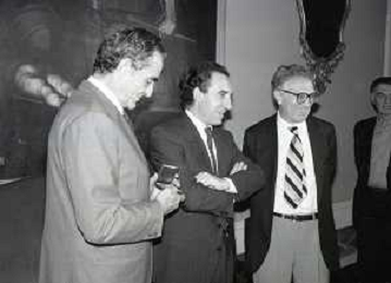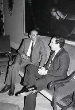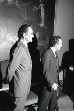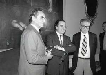 NEG- RETROSPETTIVA PAOLO PILLITTERI SINDACO DI MILANO E POLITICO PARTITO SOCIALISTA ITALIANO NELLA FOTO PAOLO PILLITTERI SINDACO DI MILANO A PALAZZO MARINO NELL'ANNO 1988 CON VITTORIO GASSMAN AG ALDO LIVERANI SAS