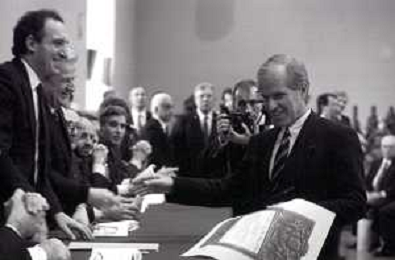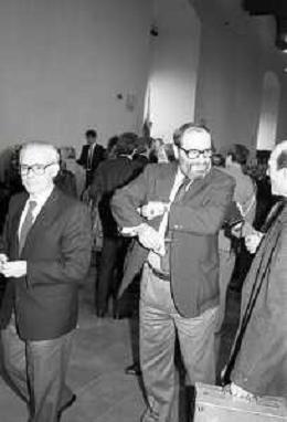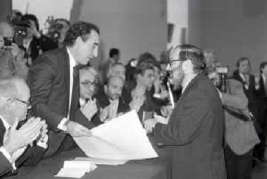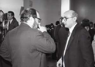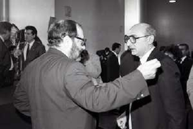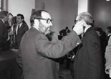 NEG- RETROSPETTIVA PAOLO PILLITTERI SINDACO DI MILANO E POLITICO PARTITO SOCIALISTA ITALIANO NELLA FOTO PAOLO PILLITTERI SINDACO DI MILANO A MLANO NELL'ANNO 1988 CONSEGNA DEGLI AMBROGINI D'ORO-UMBERTO ECO AG ALDO LIVERANI SAS