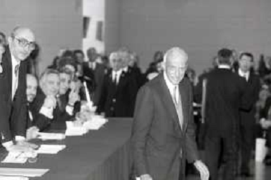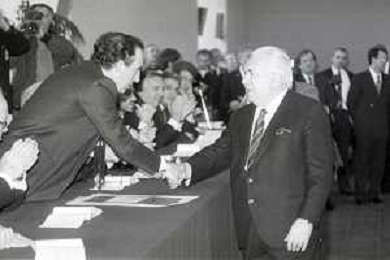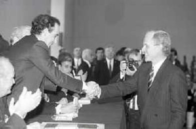 NEG- RETROSPETTIVA PAOLO PILLITTERI SINDACO DI MILANO E POLITICO PARTITO SOCIALISTA ITALIANO NELLA FOTO PAOLO PILLITTERI SINDACO DI MILANO A MLANO NELL'ANNO 1988 CONSEGNA DEGLI AMBROGINI D'ORO-LEOPOLDO PIRELLI AG ALDO LIVERANI SAS