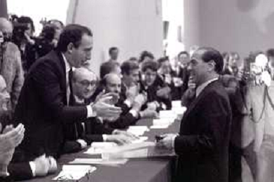 NEG- RETROSPETTIVA PAOLO PILLITTERI SINDACO DI MILANO E POLITICO PARTITO SOCIALISTA ITALIANO NELLA FOTO PAOLO PILLITTERI SINDACO DI MILANO A MLANO NELL'ANNO 1988 CONSEGNA DEGLI AMBROGINI D'ORO-SILVIO BERLUSCONI AG ALDO LIVERANI SAS