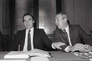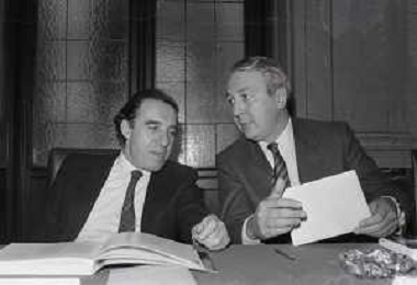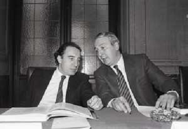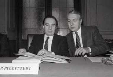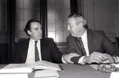 NEG -RETROSPETTIVA PAOLO PILLITTERI SINDACO DI MILANO E POLITICO PARTITO SOCIALISTA ITALIANO NELLA FOTO PAOLO PILLITTERI SINDACO DI MILANO CON L'ASSESSORE GUIDO AGHINA NELL'ANNO 1989 AG ALDO LIVERANI SAS