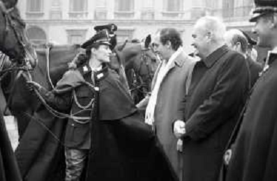 NEG -RETROSPETTIVA PAOLO PILLITTERI SINDACO DI MILANO E POLITICO PARTITO SOCIALISTA ITALIANO NELLA FOTO PAOLO PILLITTERI SINDACO DI MILANO CON IL PREFETTO DI MILANO CARMELO CARUSO NELL'ANNO 1989 IN PIAZZA DUOMO A MILANO AG ALDO LIVERANI SAS