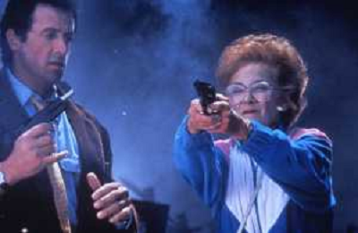 DIAP-RETROSPETTIVA SILVESTER STALLONE ATTORE NELLA FOTO SILVESTER STALLONE NEL FILM“Stop! Or My Mom Will Shoot “ NELL'ANNO 1986 CON ESTELLE GETTY AG ALDO LIVERANI SAS