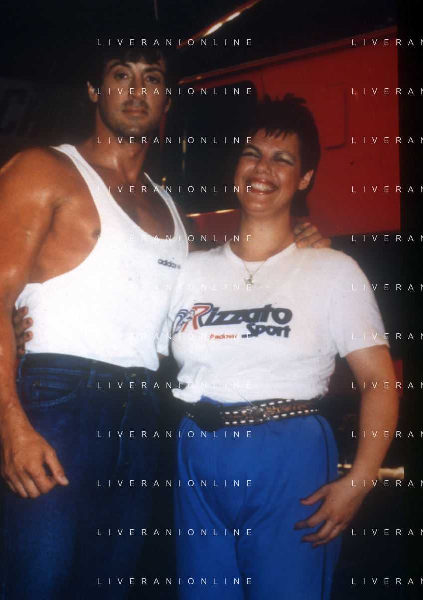 DIAP-RETROSPETTIVA SILVESTER STALLONE ATTORE NELLA FOTO SILVESTER STALLONE NEL FILM“OVER THE TOP“ ANNO 1987 CON MARISTELLA AVANZINI AG ALDO LIVERANI SAS