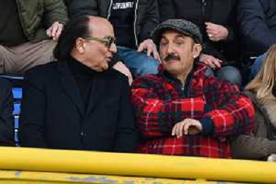 Serie B 2023-2024 Stadio Rigamonti-Ceppi Lecco vs Cosenza Nella foto: Il comico Nicola Savino e Il Presidente Eugenio Guarascio ©Andrea Rosito/AGENZIA ALDO LIVERANI SAS
