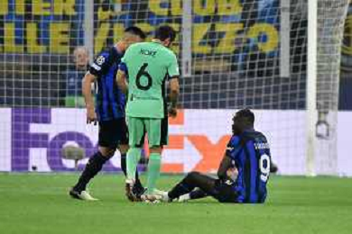 Inter vs Atletico Madrid nella foto Marcus Thuram (Inter) infortunato Milano 20-02-2024 Stadio Giuseppe Meazza - San Siro UEFA Champions League - ottavi di finale gara di andata foto Roberto Garavaglia/Agenzia Aldo Liverani sas/AGENZIA ALDO LIVERANI SAS
