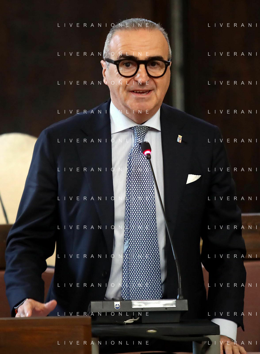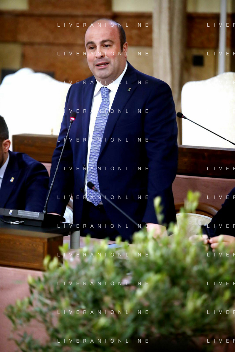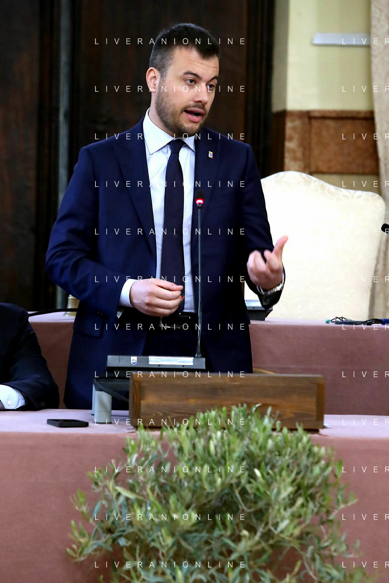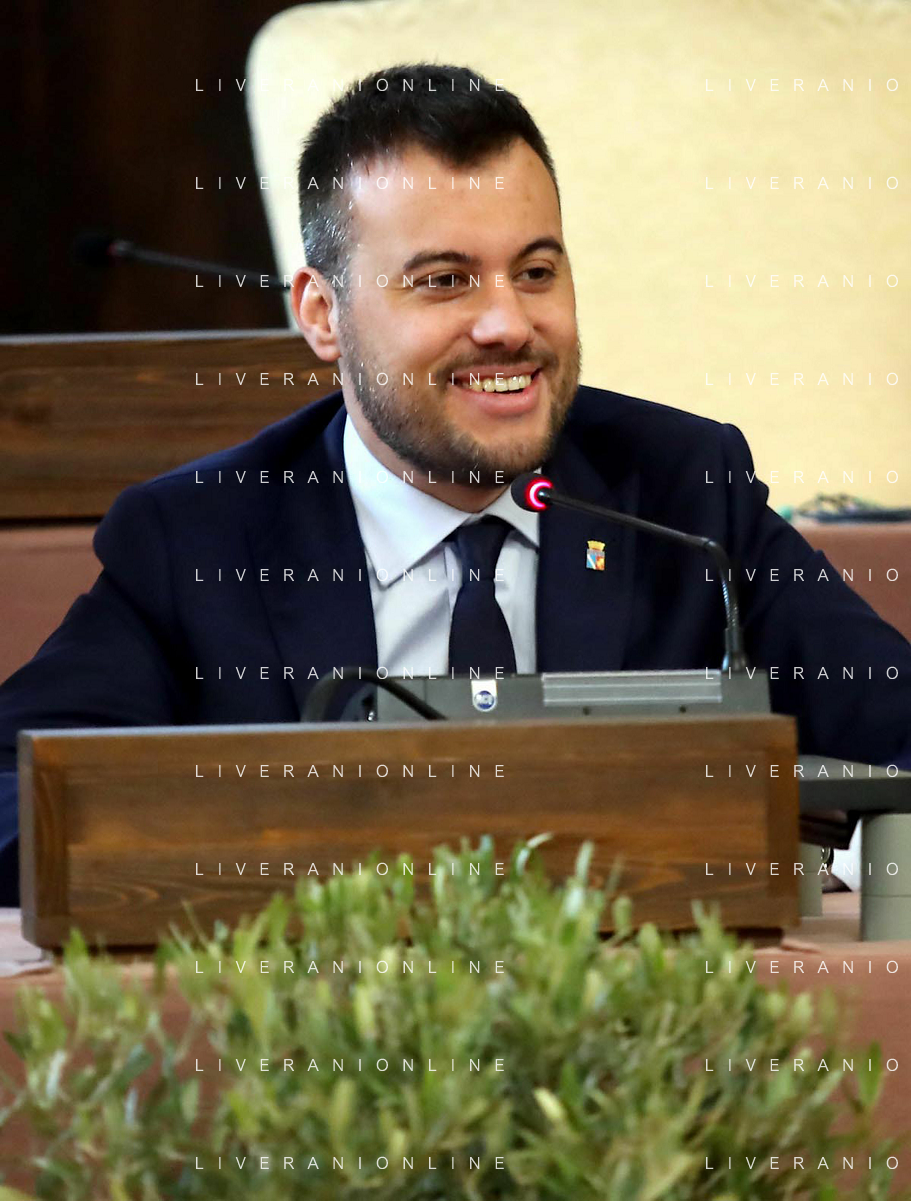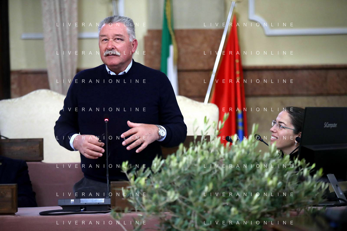 IMOLA 22 02 2024 in Municipio, il presidente dell'Associazione Nazionale, Michele Sonnessa, ha consegnato la bandiera al sindaco Marco Panieri IMOLA E' ENTRATA A FAR PARTE DELLE "CITTA' DELL'OLIO" NELLA FOTO GIOVANNI BETTINI CLAI IMOLA,ASSESSORE PIERANGELO RAFFINI,DIRETTORE ASS NAZIONE CITTA' DELL'OLIO ANTONIO BALENZANO,SINDACO MARCO PANIERI,PRESIDENTE ASS NAZIONALE CITTA' DELL'OLIO MICHELE SONNESSA,VICE PRESIDENTE FRANTOIO VALSANTERNO VANNI ANGELI ©SANNA/AGENZIA ALDO LIVERANI SAS