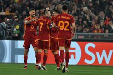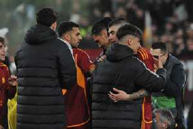 Roma vs Feyenoord - Europa League - Play Off - Stadio Olimpico - Roma 22-02-2024 nella foto Esultanza finale Roma ©Federico Gaetano/AGENZIA ALDO LIVERANI SAS