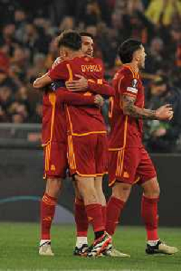 Roma vs Feyenoord - Europa League - Play Off - Stadio Olimpico - Roma 22-02-2024 nella foto Esultanza Roma dopo gol lorenzo pellegrini con paulo Dybala ©Federico Gaetano/AGENZIA ALDO LIVERANI SAS