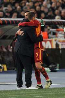 Roma vs Feyenoord - Europa League - Play Off - Stadio Olimpico - Roma 22-02-2024 nella foto Abbraccio tra De Rossi e Pellegrini ©Federico Gaetano/AGENZIA ALDO LIVERANI SAS