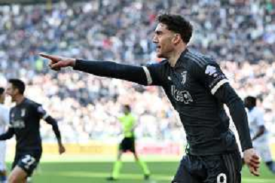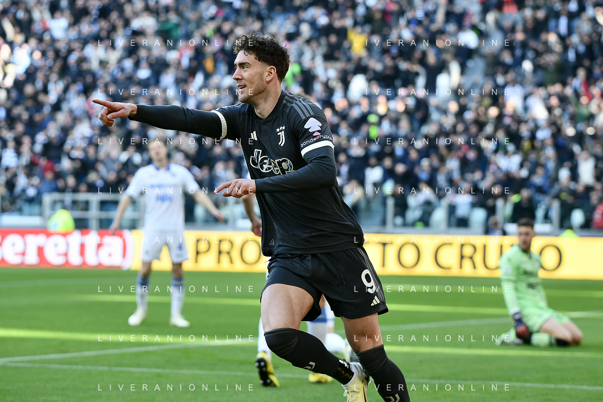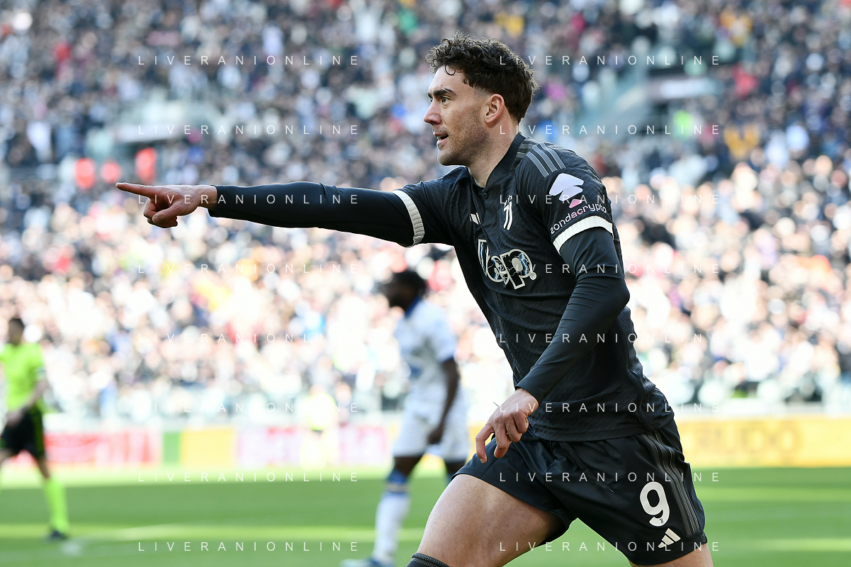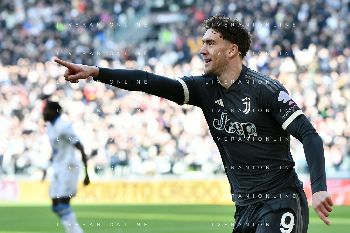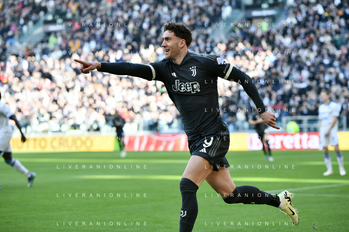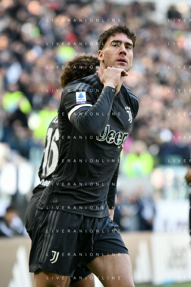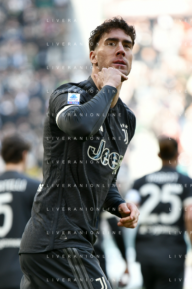 Torino 25.02.2024 Allianz Stadium @Manuela Viganti/Ag. Aldo Liverani sas Juventus vs Frosinone Campionato Calcio Serie A TIM 2023/2024 26a giornata Nella foto: esultanza dusan vlahovic dopo il gol
