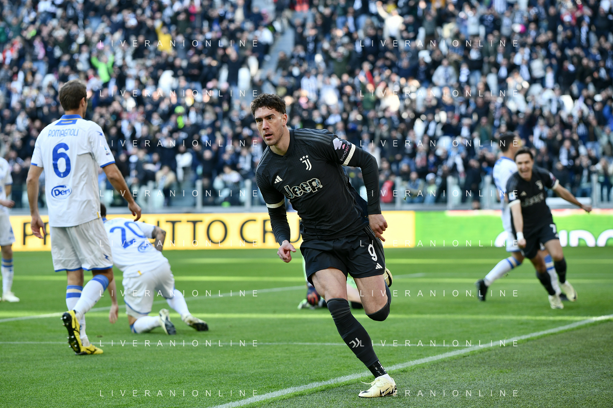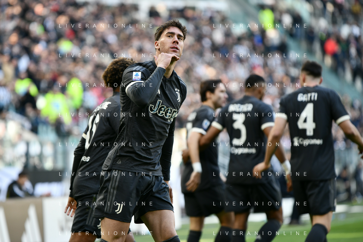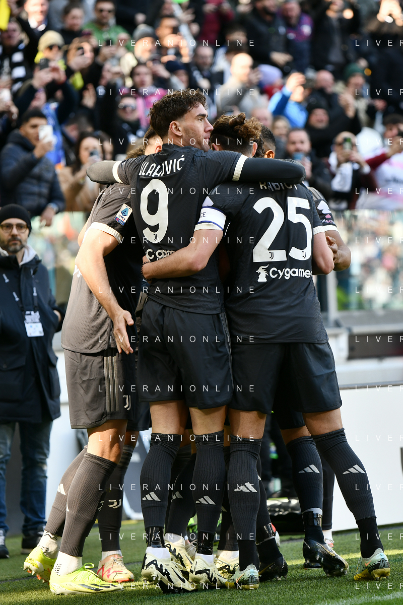 Torino 25.02.2024 Allianz Stadium @Manuela Viganti/Ag. Aldo Liverani sas Juventus vs Frosinone Campionato Calcio Serie A TIM 2023/2024 26a giornata Nella foto: esultanza juventus dopo il gol di dusan vlahovic