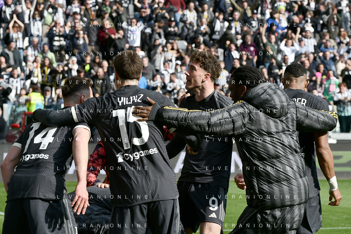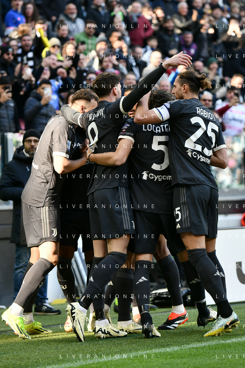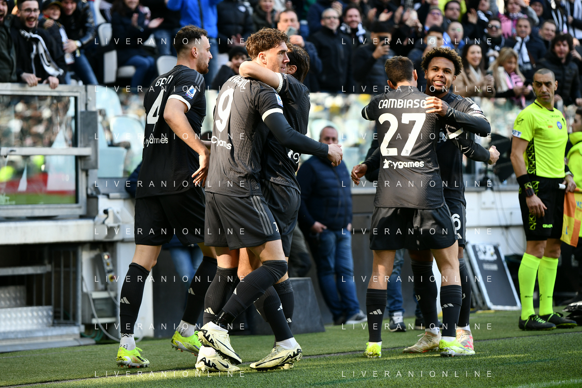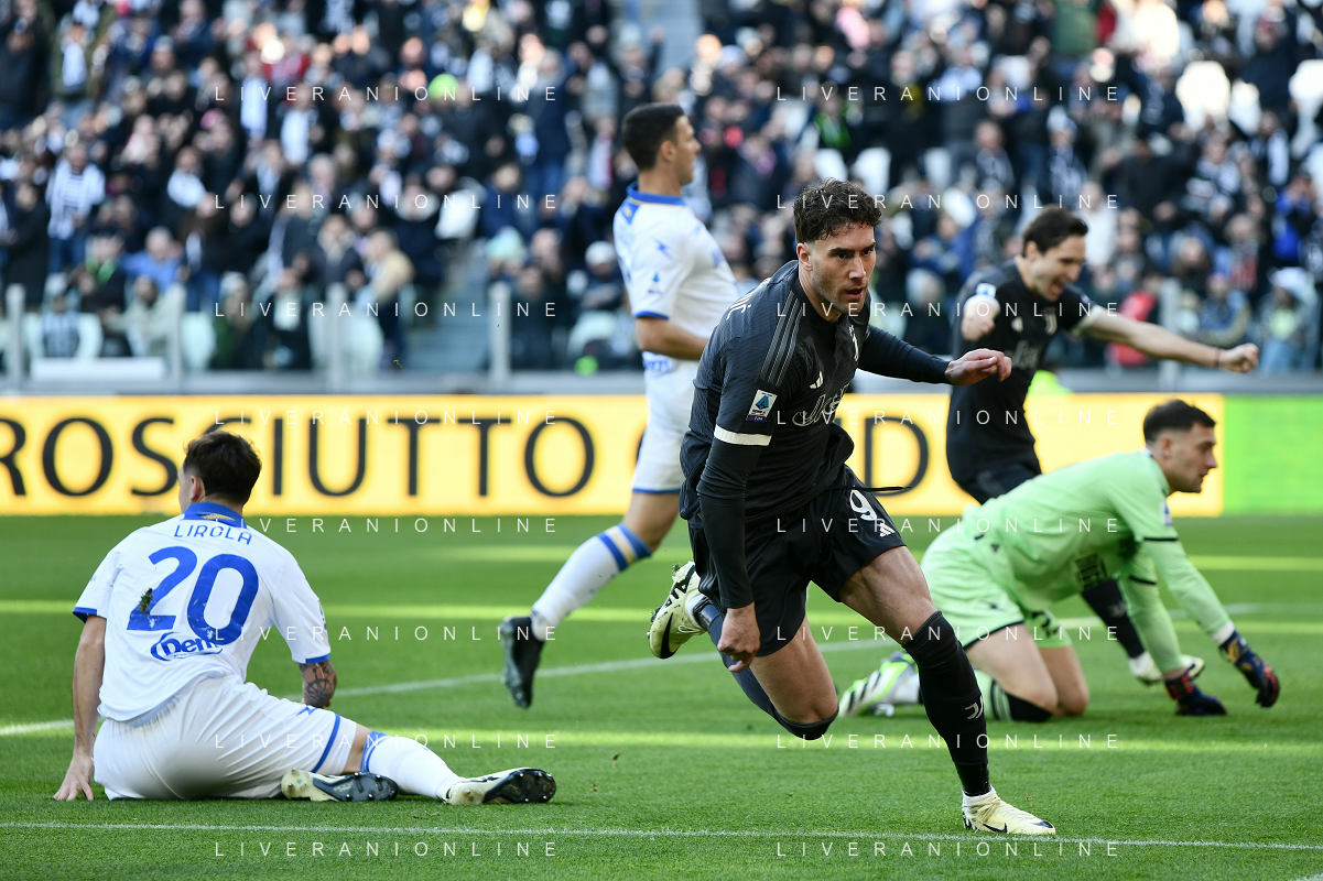 Torino 25.02.2024 Allianz Stadium @Manuela Viganti/Ag. Aldo Liverani sas Juventus vs Frosinone Campionato Calcio Serie A TIM 2023/2024 26a giornata Nella foto: esultanza juventus dopo il gol di dusan vlahovic