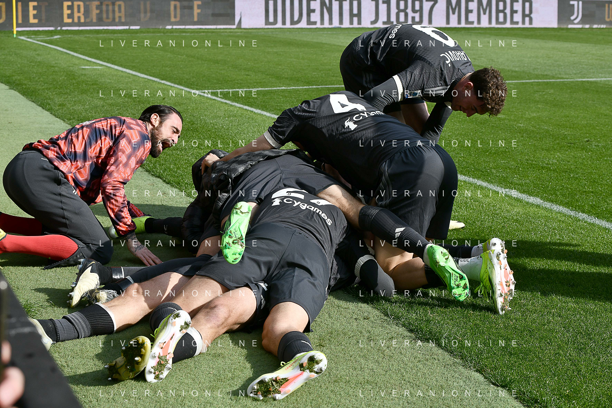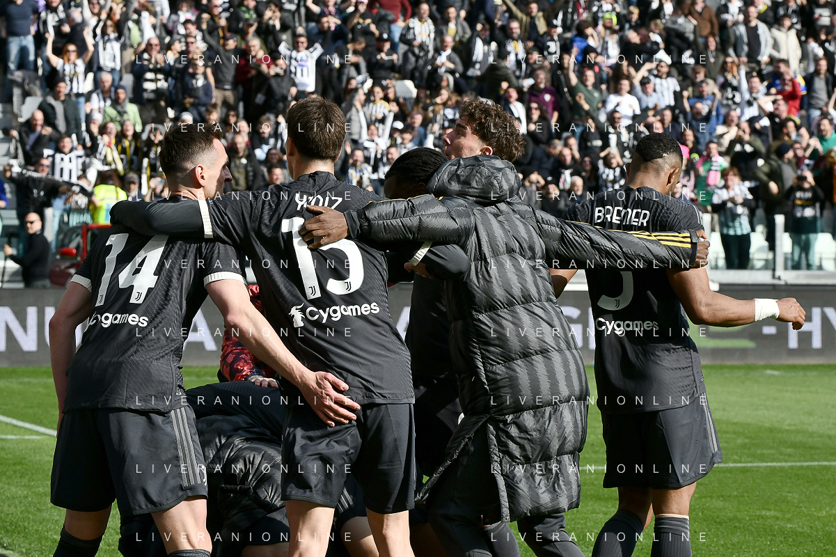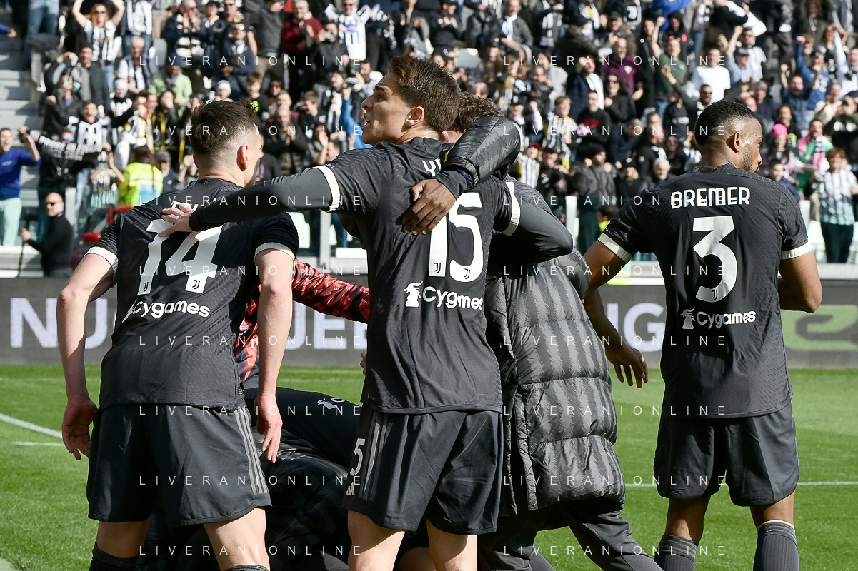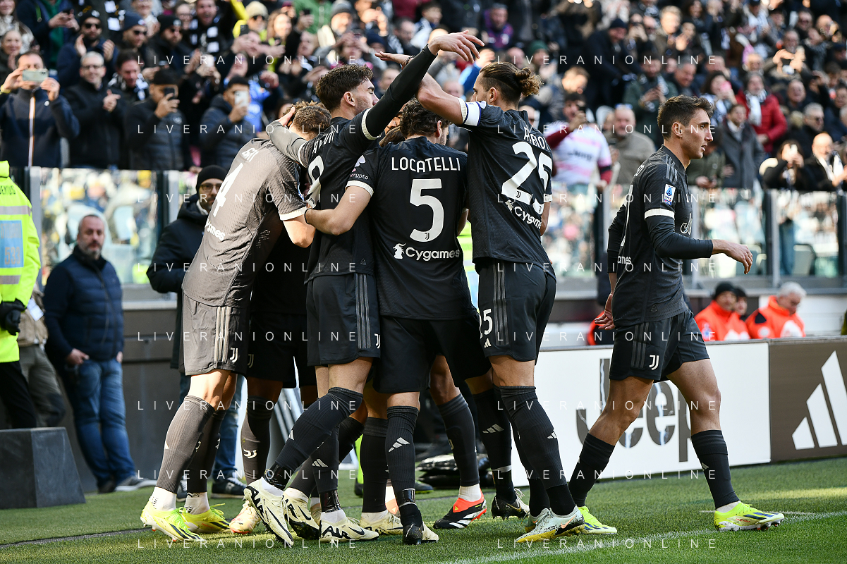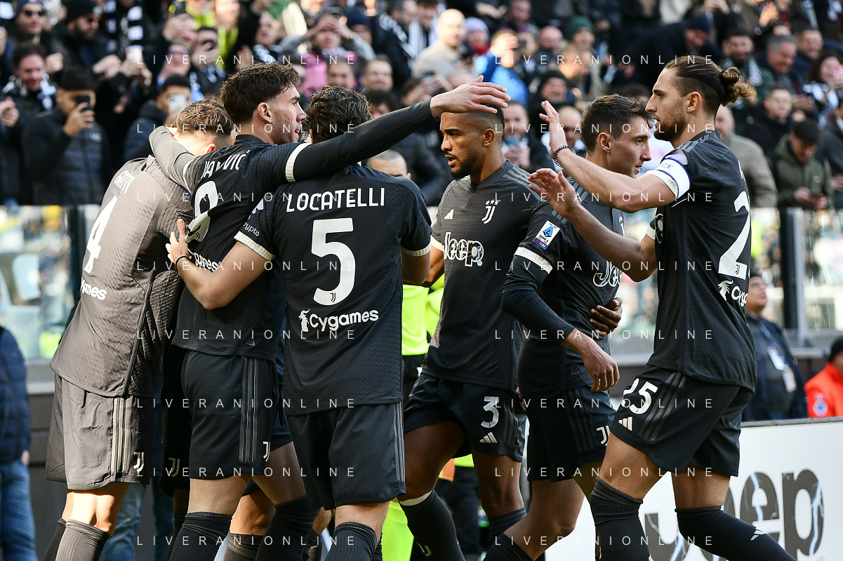 Torino 25.02.2024 Allianz Stadium @Manuela Viganti/Ag. Aldo Liverani sas Juventus vs Frosinone Campionato Calcio Serie A TIM 2023/2024 26a giornata Nella foto: esultanza juventus dopo il gol di daniele rugani