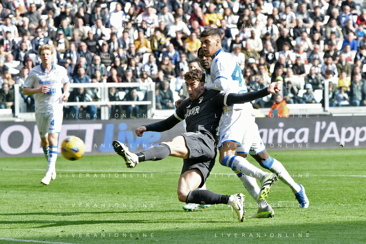 Torino 25.02.2024 Allianz Stadium @Manuela Viganti/Ag. Aldo Liverani sas Juventus vs Frosinone Campionato Calcio Serie A TIM 2023/2024 26a giornata Nella foto: occasione dusan vlahovic