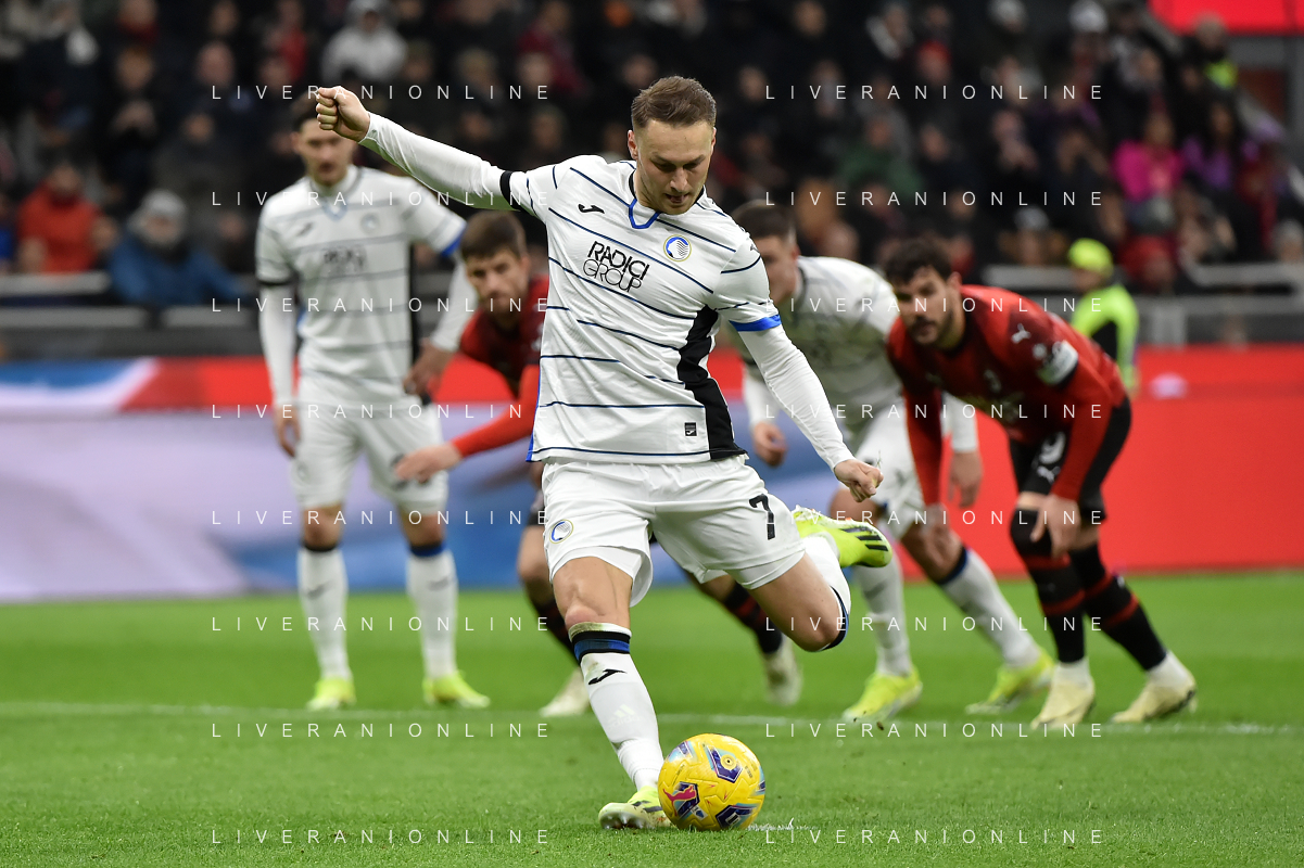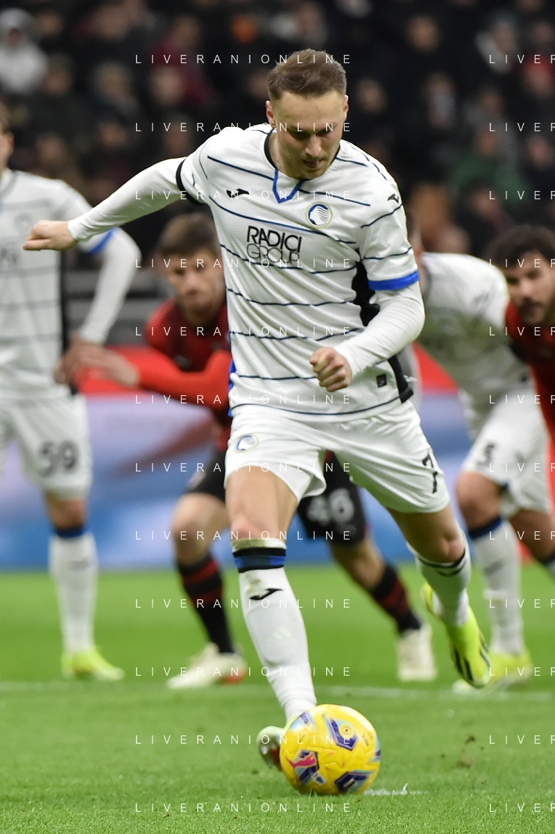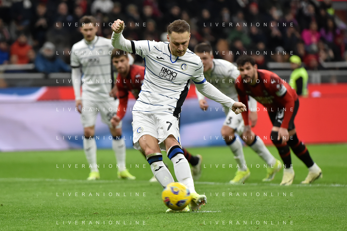 Milan vs Atalanta nella foto Teun Koopmeiners (Atalanta) segna il gol dell'1 a 1 Milano 25-02-2024 Stadio Giuseppe Meazza - San Siro Campionato Serie A TIM - 26a giornata foto Roberto Garavaglia/Agenzia Aldo Liverani sas/AGENZIA ALDO LIVERANI SAS