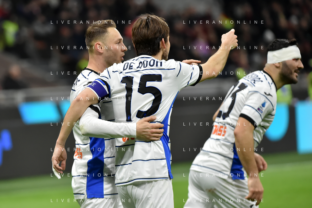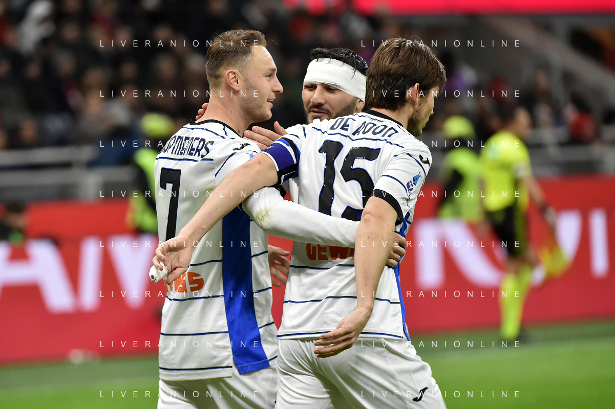 Milan vs Atalanta nella foto esultanza Atalanta dopo il gol dell'1 a 1 Milano 25-02-2024 Stadio Giuseppe Meazza - San Siro Campionato Serie A TIM - 26a giornata foto Roberto Garavaglia/Agenzia Aldo Liverani sas/AGENZIA ALDO LIVERANI SAS