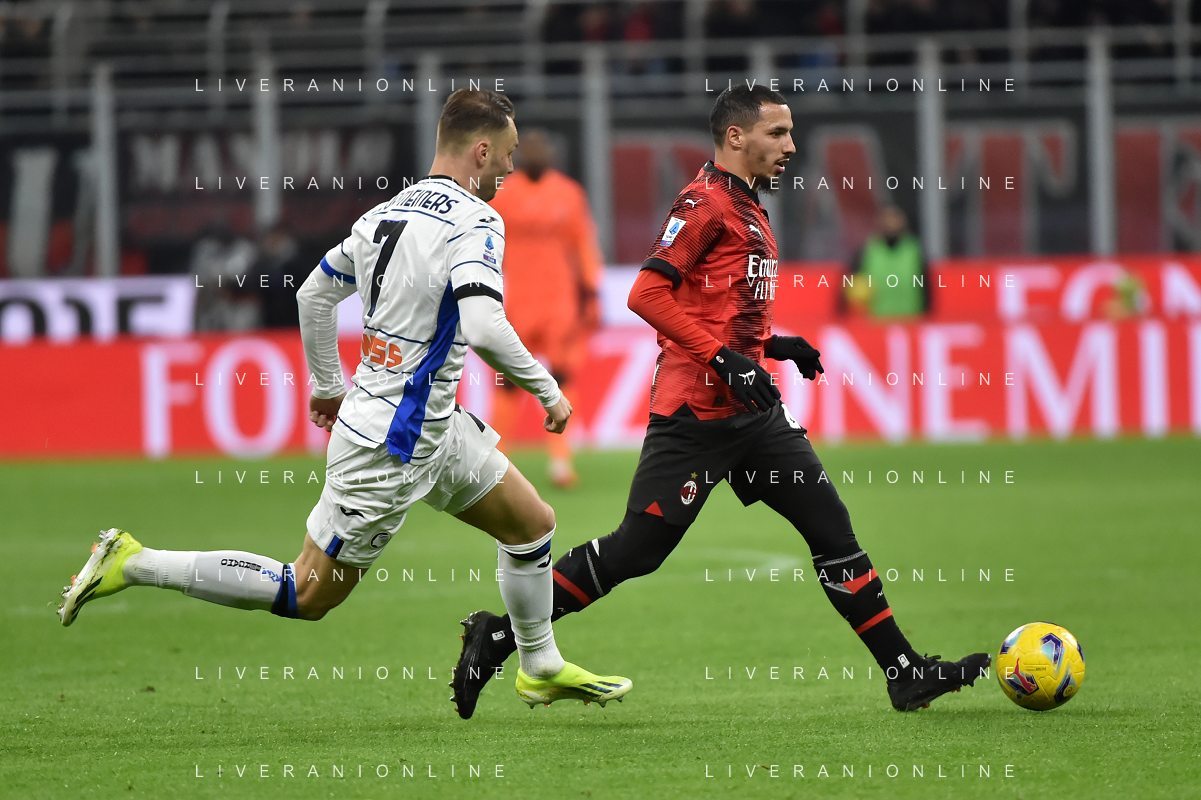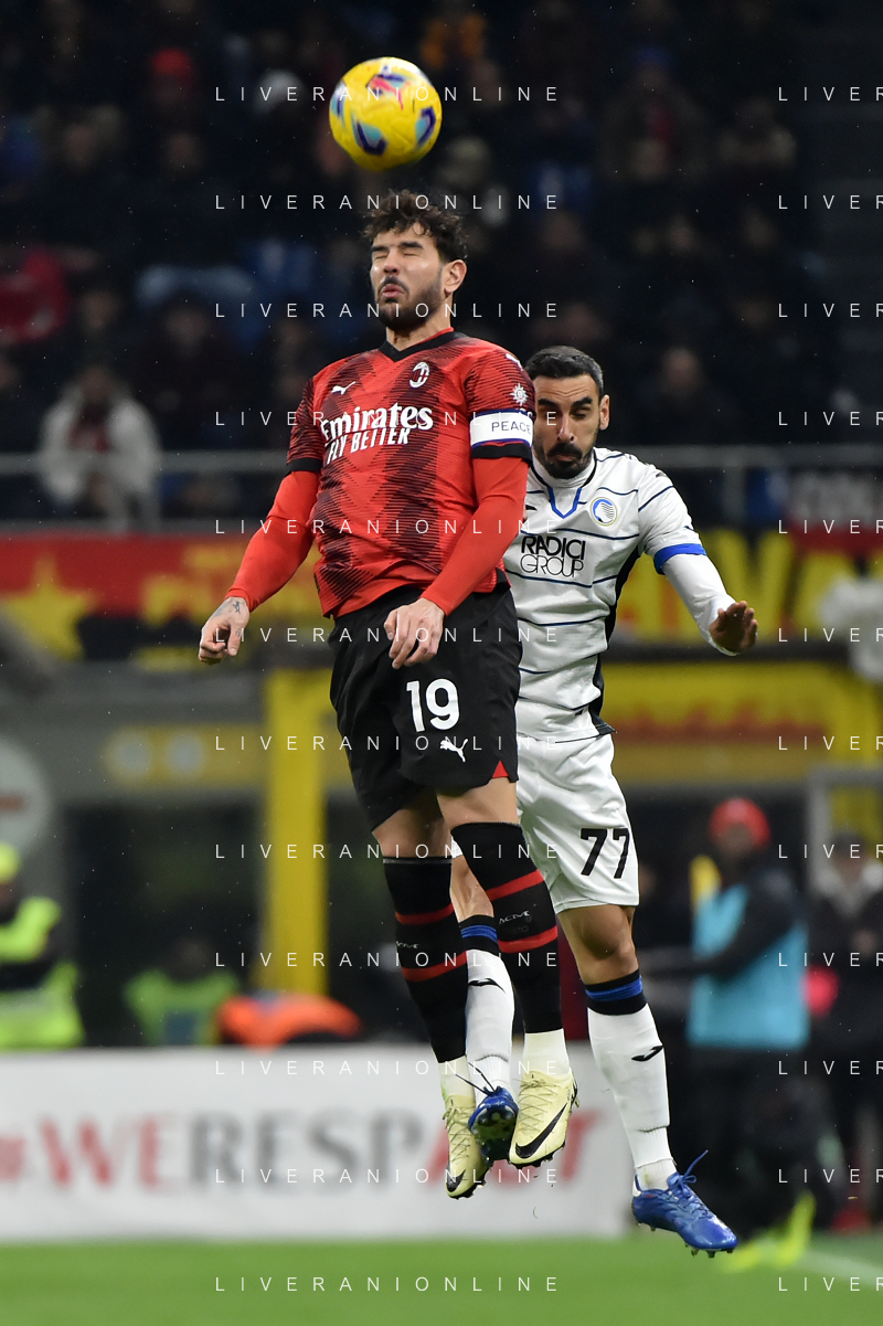 Milan vs Atalanta nella foto Theo Hernandez (Milan) e Davide Zappacosta (Atalanta) Milano 25-02-2024 Stadio Giuseppe Meazza - San Siro Campionato Serie A TIM - 26a giornata foto Roberto Garavaglia/Agenzia Aldo Liverani sas/AGENZIA ALDO LIVERANI SAS