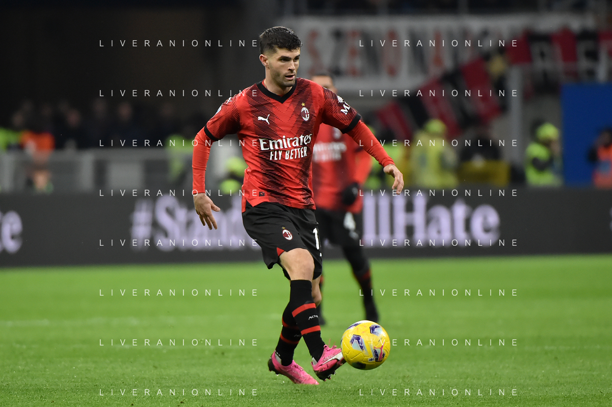 Milan vs Atalanta nella foto Christian Mate Pulisic (Milan) Milano 25-02-2024 Stadio Giuseppe Meazza - San Siro Campionato Serie A TIM - 26a giornata foto Roberto Garavaglia/Agenzia Aldo Liverani sas/AGENZIA ALDO LIVERANI SAS