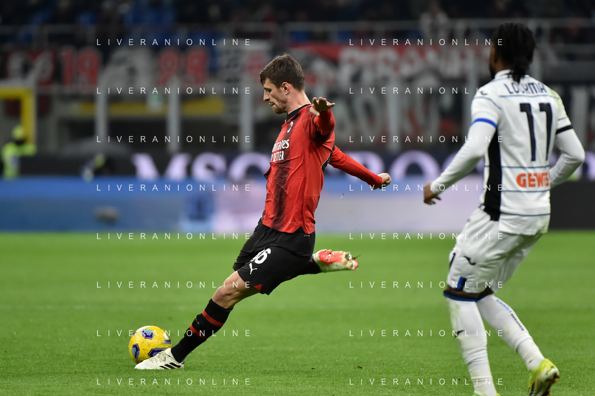 Milan vs Atalanta nella foto Matteo Gabbia (Milan) al tiro Milano 25-02-2024 Stadio Giuseppe Meazza - San Siro Campionato Serie A TIM - 26a giornata foto Roberto Garavaglia/Agenzia Aldo Liverani sas/AGENZIA ALDO LIVERANI SAS