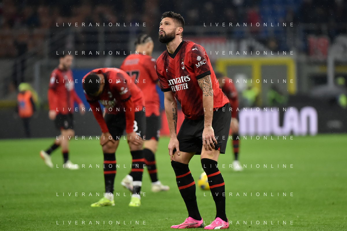 Milan vs Atalanta nella foto delusione Olivier Giroud (Milan) Milano 25-02-2024 Stadio Giuseppe Meazza - San Siro Campionato Serie A TIM - 26a giornata foto Roberto Garavaglia/Agenzia Aldo Liverani sas/AGENZIA ALDO LIVERANI SAS