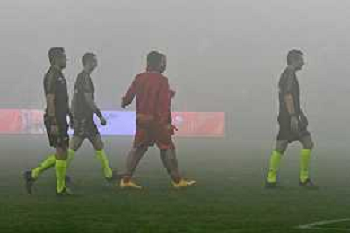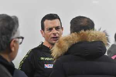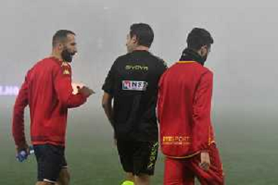 Serie B 2023-2024 Stadio Nicola Ceravolo Catanzaro-Bari Nella foto: arbitro Ivano Pezzuto con i dirigenti di Catanzaro e Bari in campo per la Nebbia la partita iniziera' con 15 minuti di ritardo ©Andrea Rosito/AGENZIA ALDO LIVERANI SAS