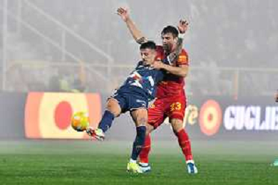 Serie B 2023-2024 Stadio Nicola Ceravolo Catanzaro-Bari Nella foto: arbitro Ivano Pezzuto con i capitani di Bari e Catanzaro in campo per la Nebbia la partita iniziera' con 15 minuti di ritardo ©Andrea Rosito/AGENZIA ALDO LIVERANI SAS