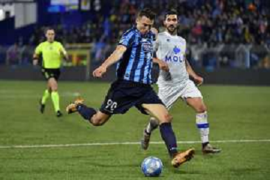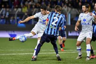 TVRG Lecco vs Como nella foto Gabriel Strefezza (Como) al tiro Lecco 27-02-2024 Stadio Rigamonti Ceppi Campionato Serie BKT - 27a giornata foto Roberto Garavaglia/Agenzia Aldo Liverani sas