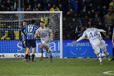TVRG Lecco vs Como nella foto Alessandro Bellemo (Como) segna il gol del 2 a 0 Lecco 27-02-2024 Stadio Rigamonti Ceppi Campionato Serie BKT - 27a giornata foto Roberto Garavaglia/Agenzia Aldo Liverani sas