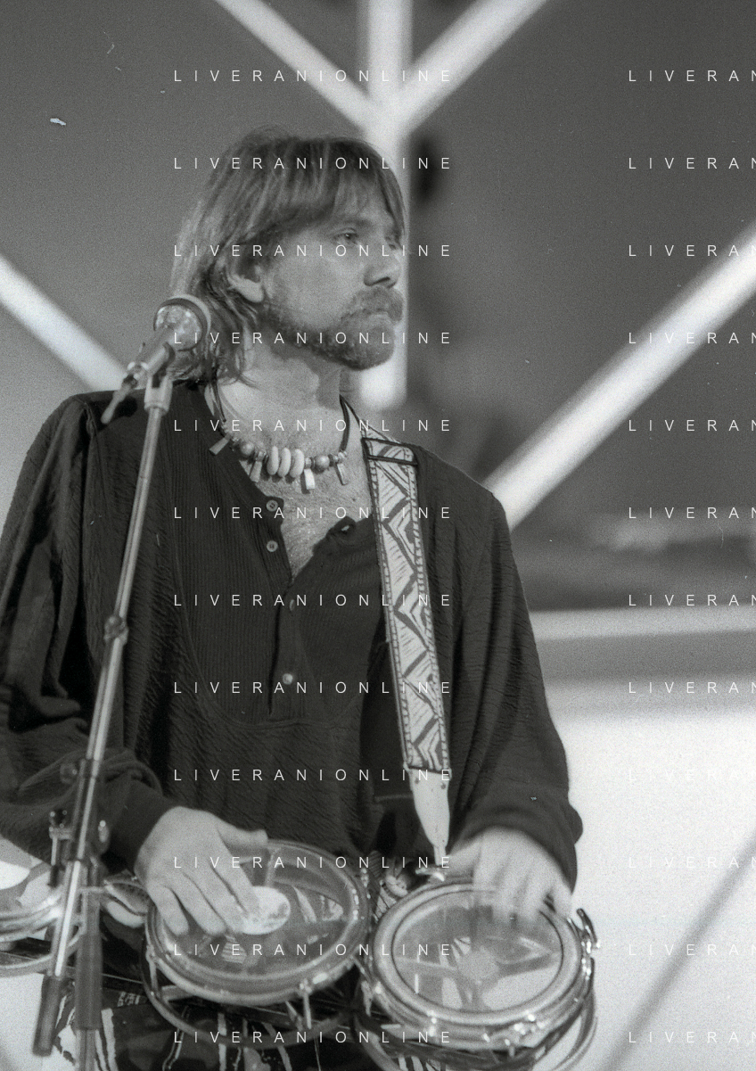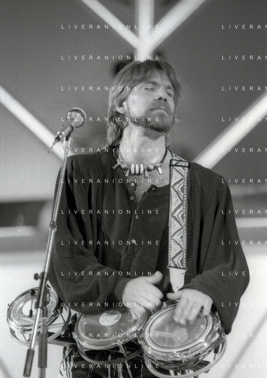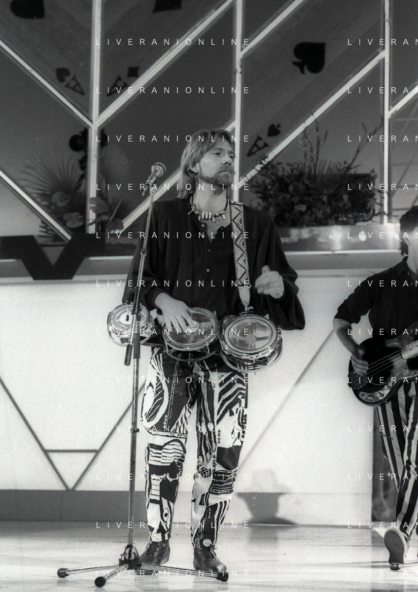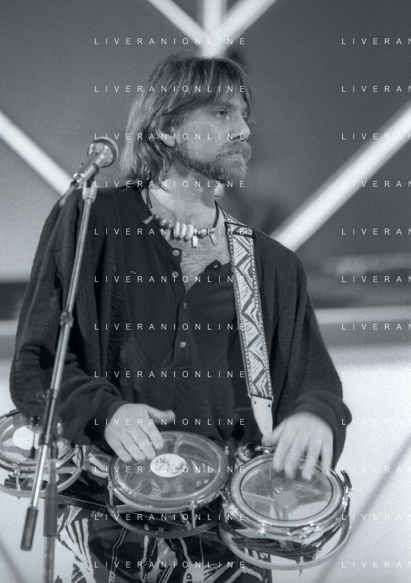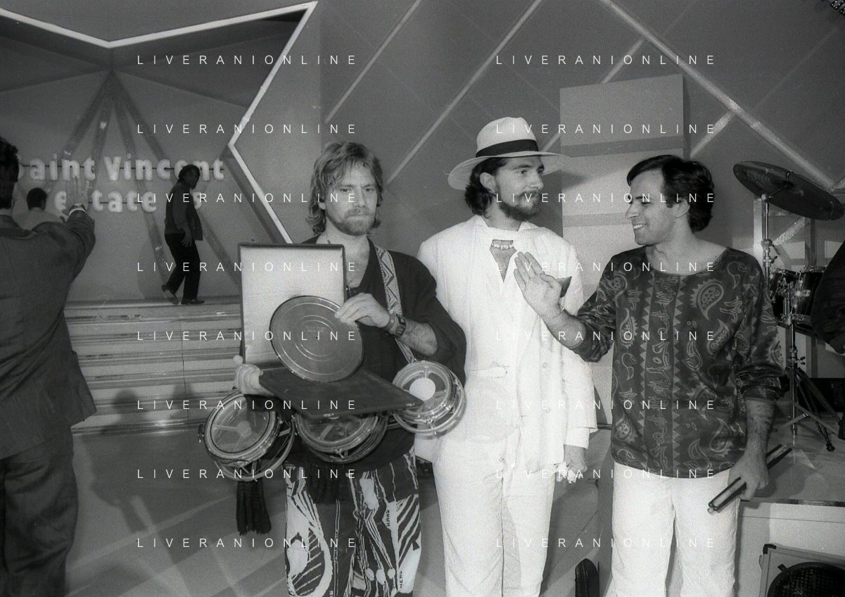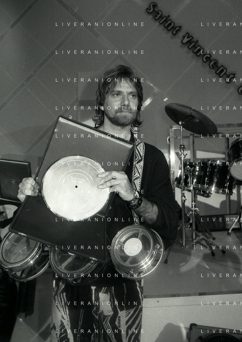 NEG-RETROSPETTIVA TONY ESPOSITO MUSICISTA-PERCUSSIONISTA E CANTAUTORE NELLA FOTO TONY ESPOSITO NELL'ANNO 1985 A SAINT VINCENT CON LU COLOMBO AG ALDO LIVERANI SAS