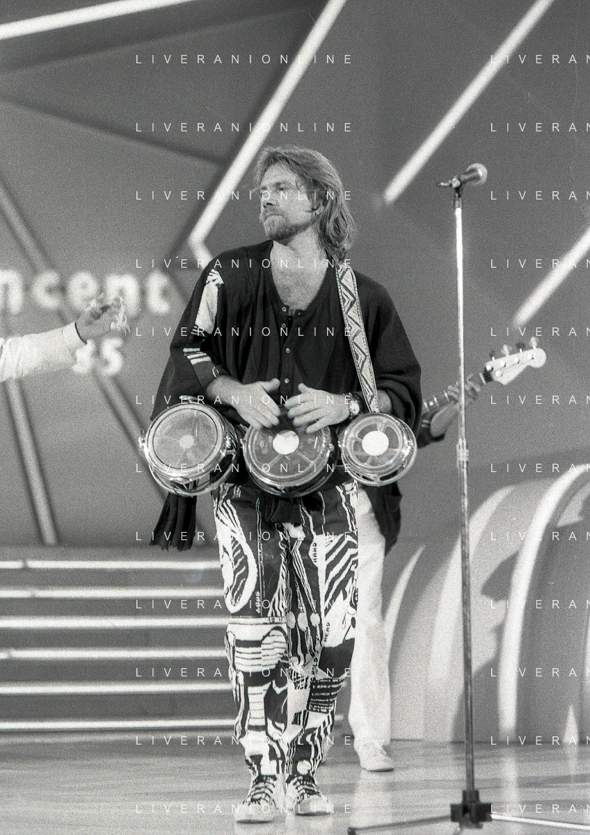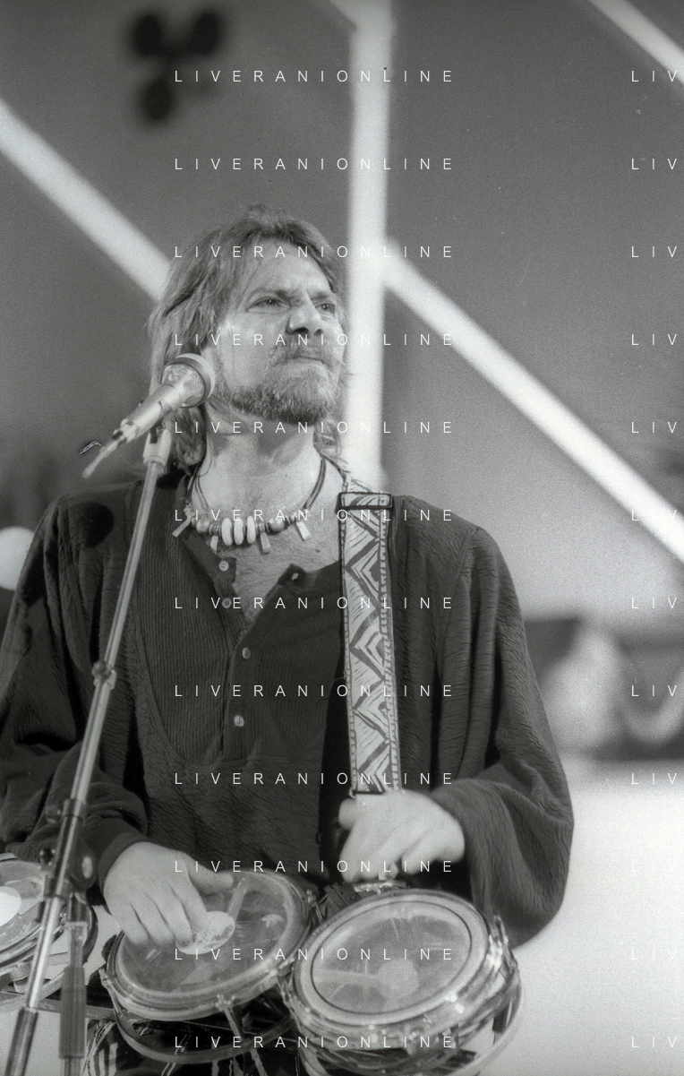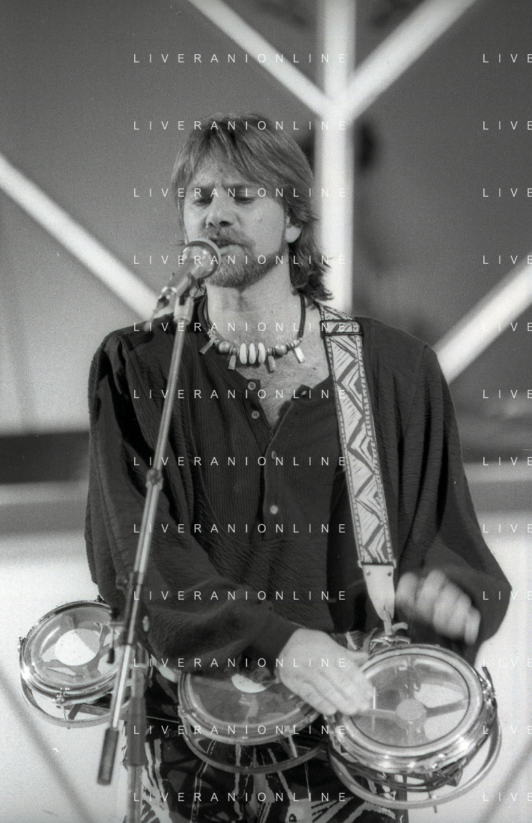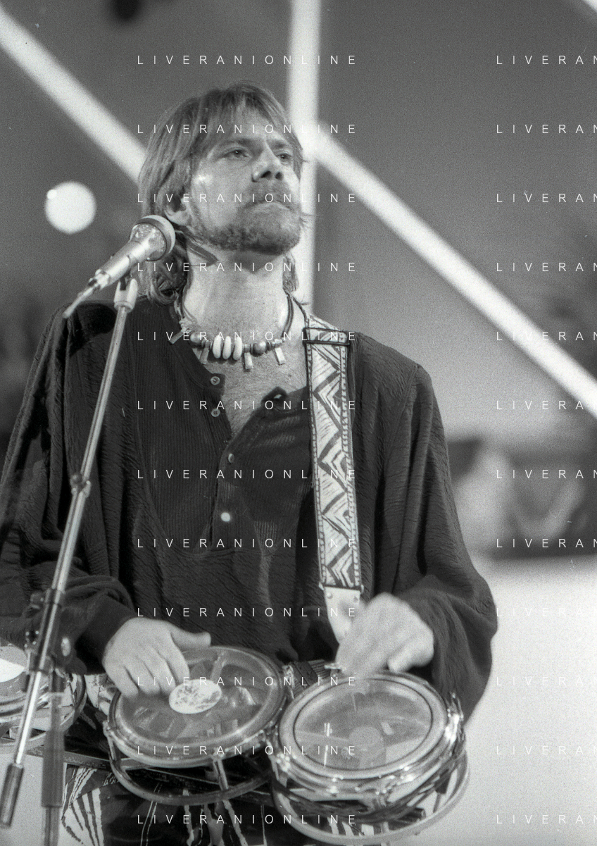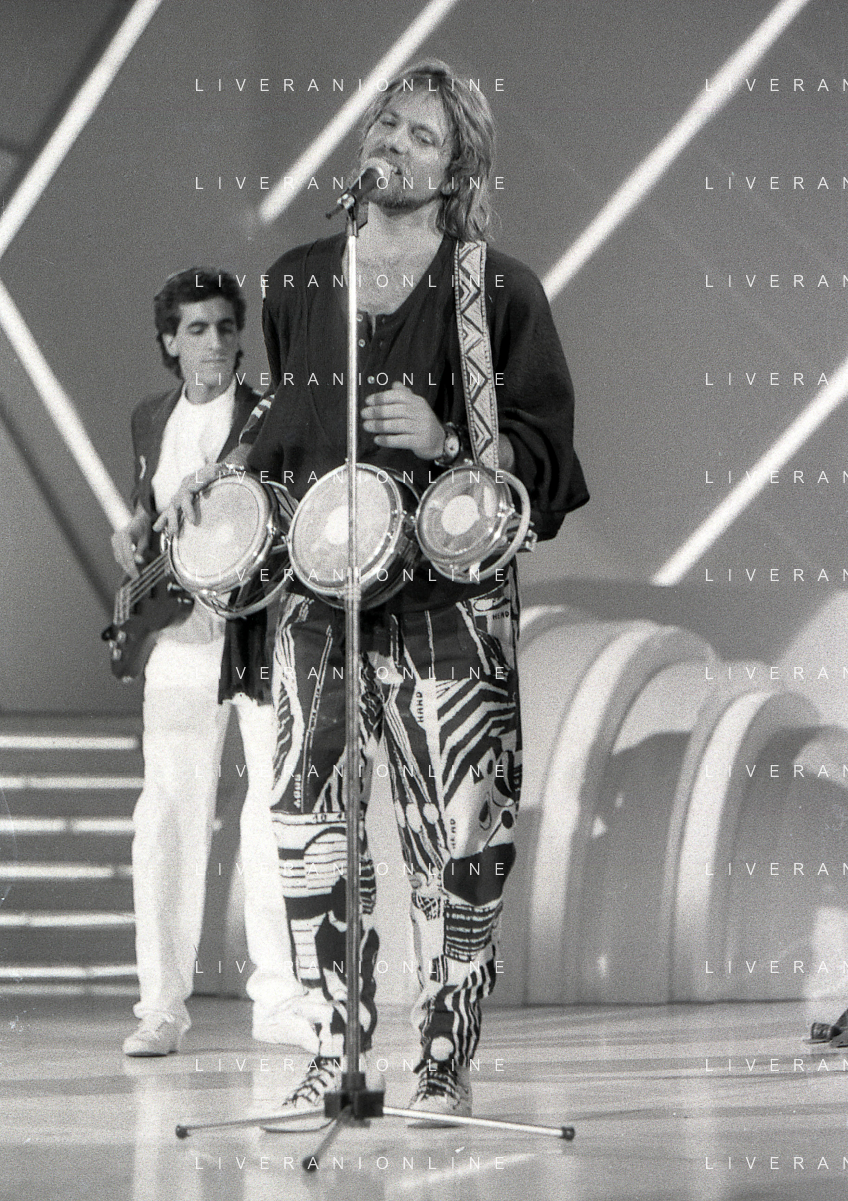 NEG-RETROSPETTIVA TONY ESPOSITO MUSICISTA-PERCUSSIONISTA E CANTAUTORE NELLA FOTO TONY ESPOSITO NELL'ANNO 1985 A SAINT VINCENT CON LU COLOMBO AG ALDO LIVERANI SAS