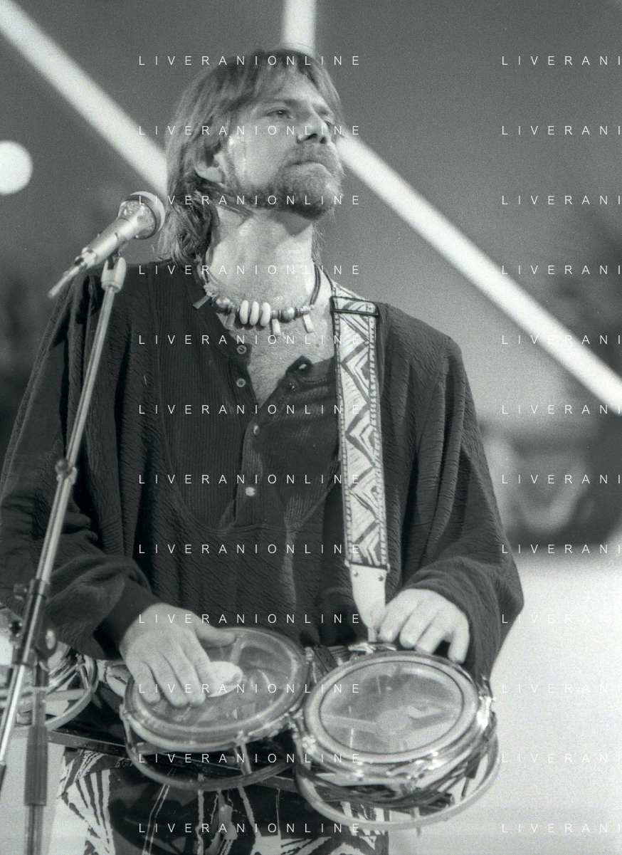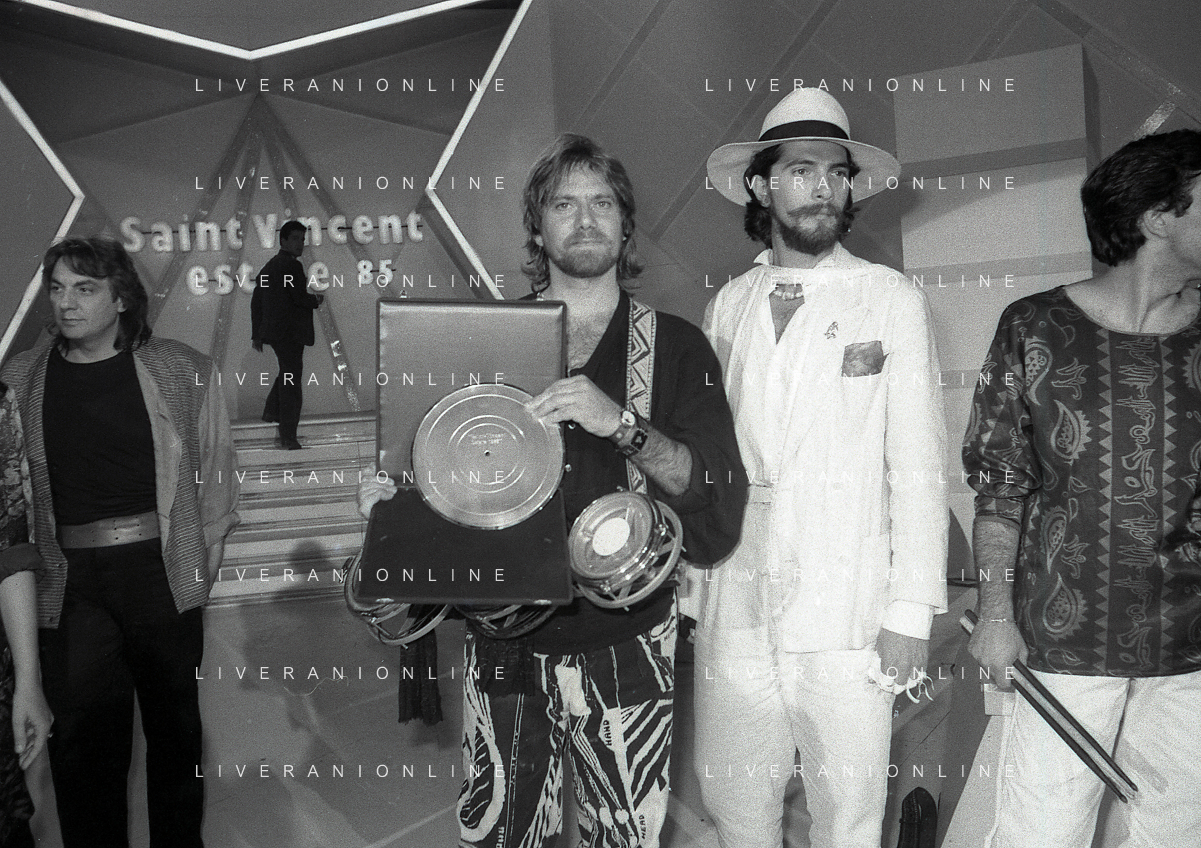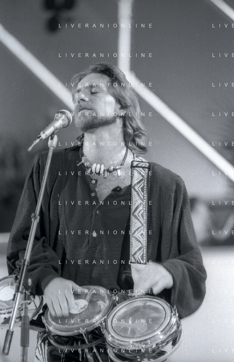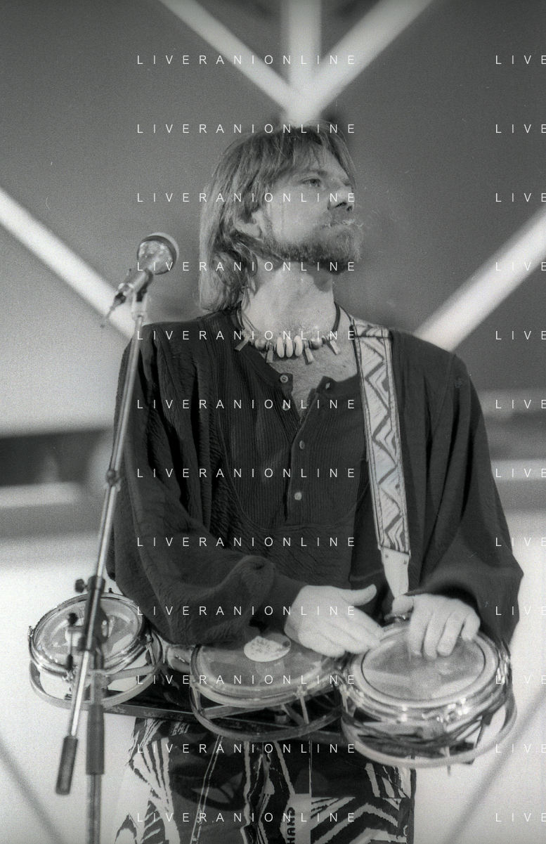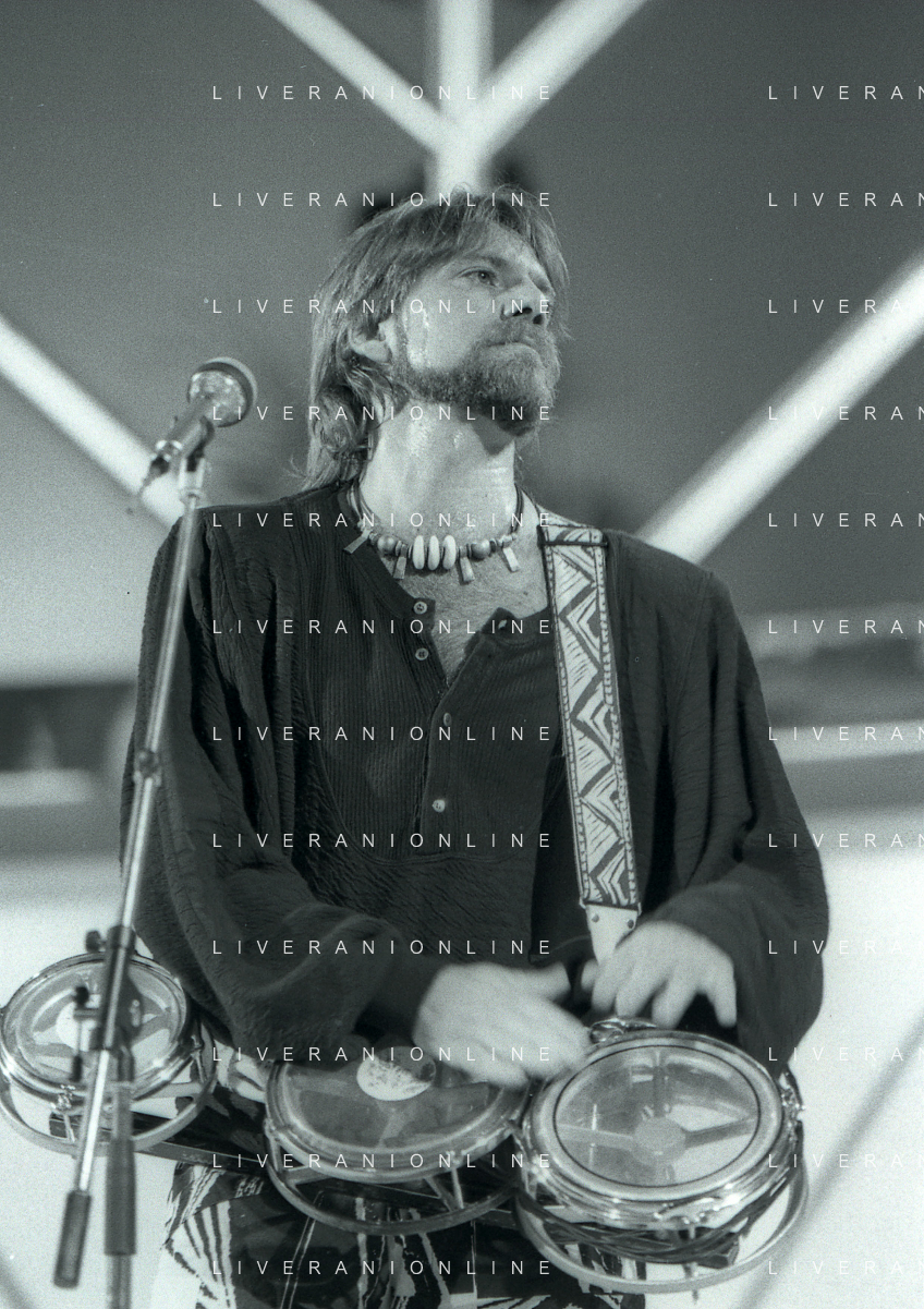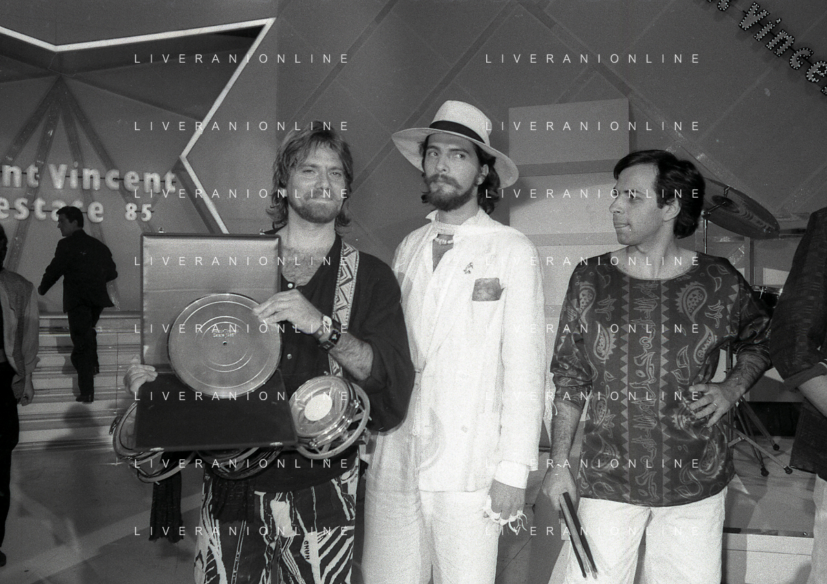 NEG-RETROSPETTIVA TONY ESPOSITO MUSICISTA-PERCUSSIONISTA E CANTAUTORE NELLA FOTO TONY ESPOSITO NELL'ANNO 1985 A SAINT VINCENT CON LU COLOMBO AG ALDO LIVERANI SAS