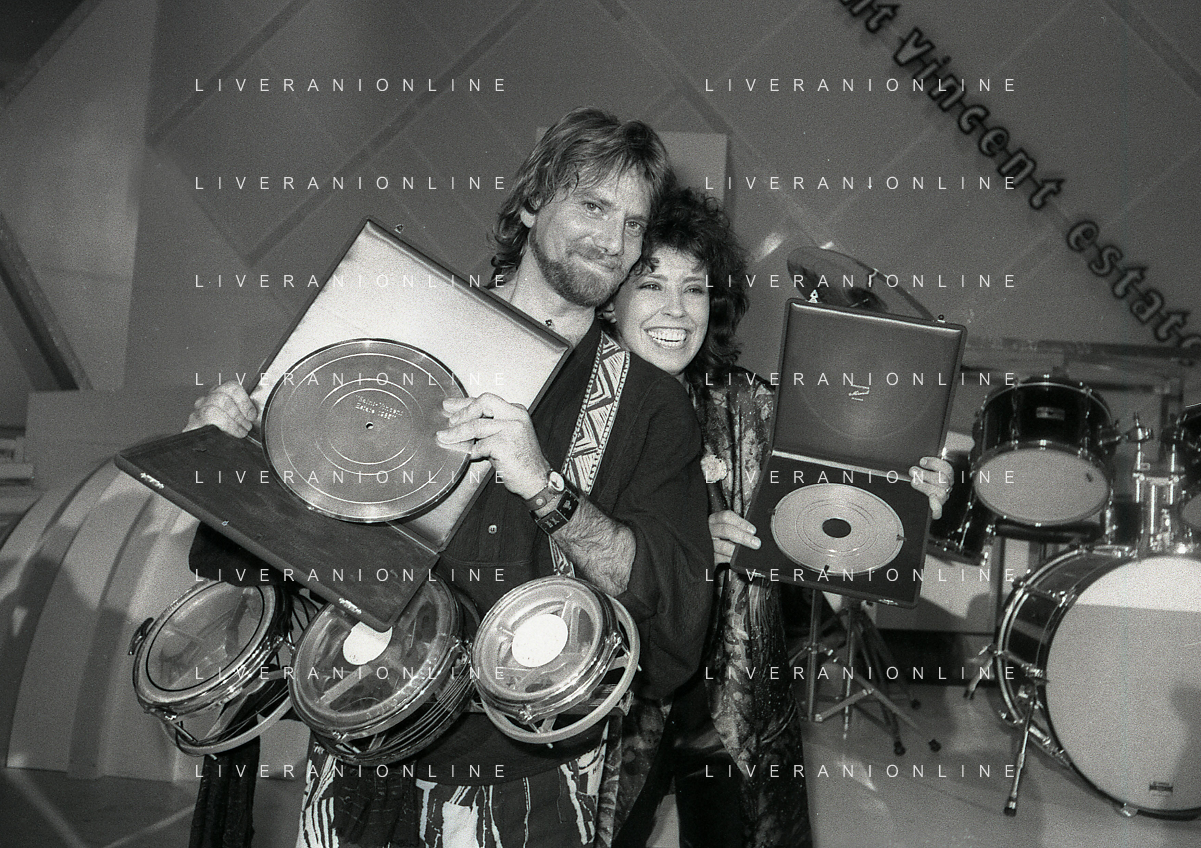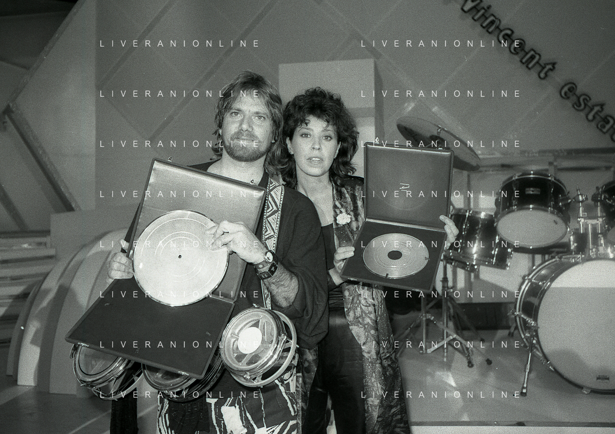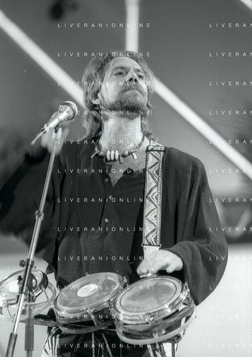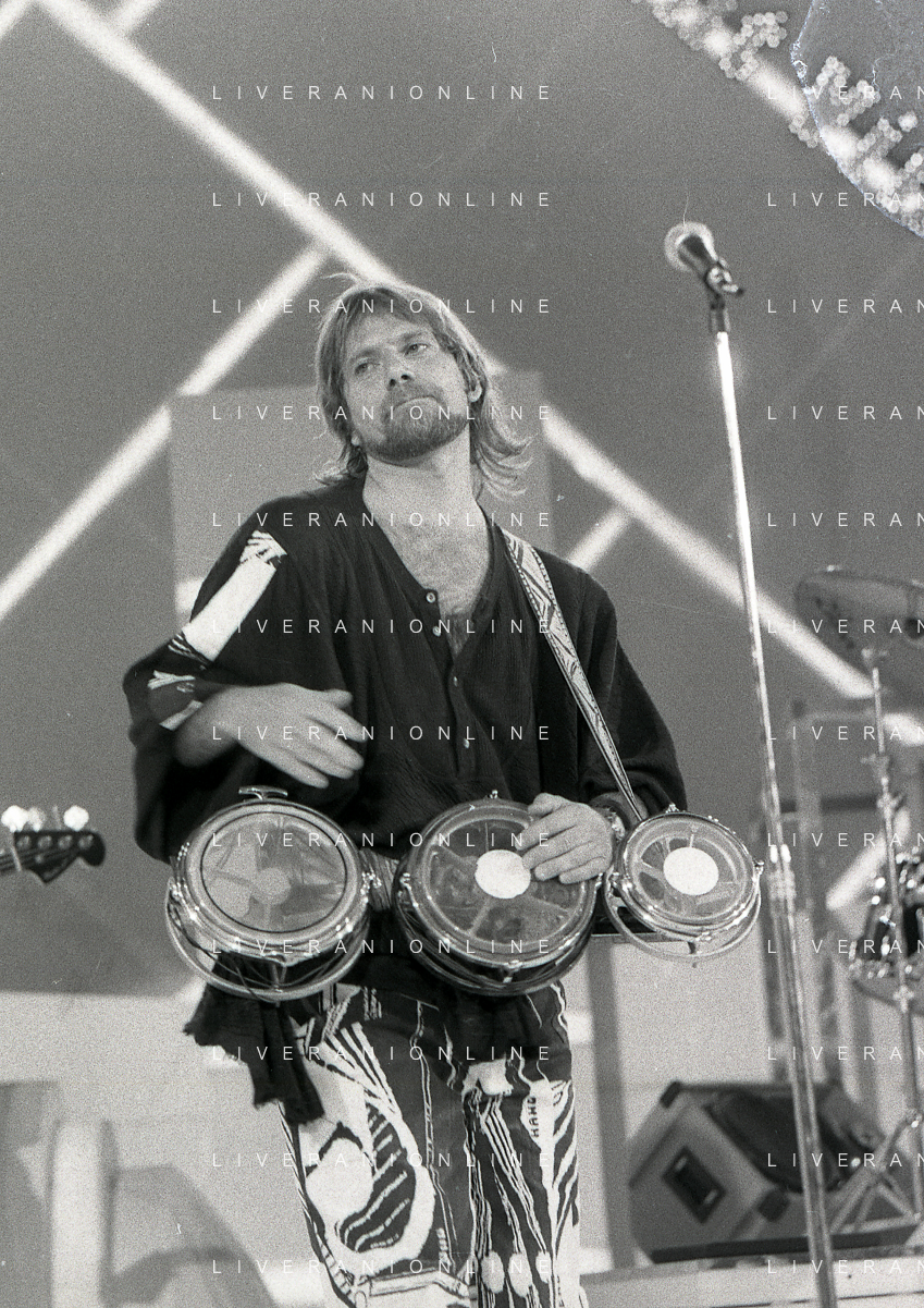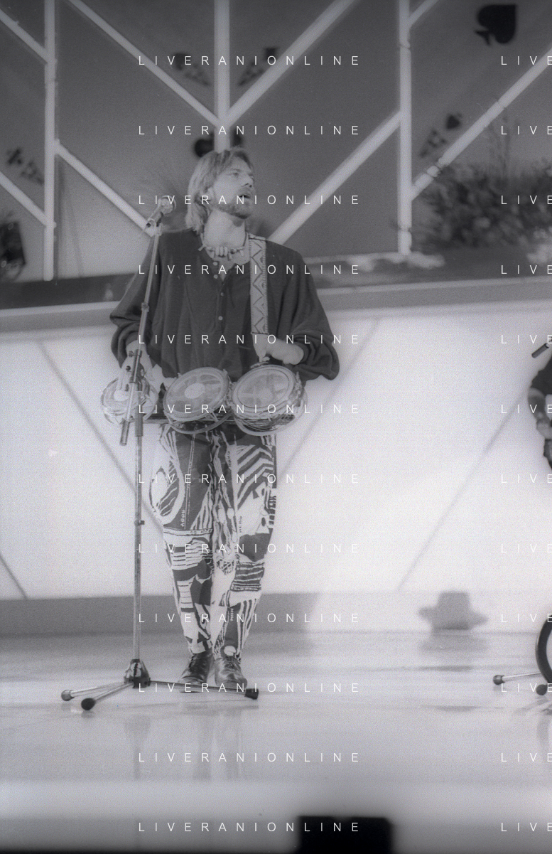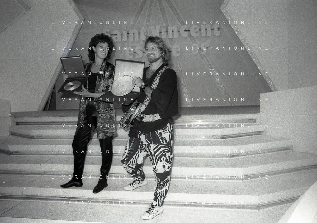 NEG-RETROSPETTIVA TONY ESPOSITO MUSICISTA-PERCUSSIONISTA E CANTAUTORE NELLA FOTO TONY ESPOSITO NELL'ANNO 1985 A SAINT VINCENT CON LU COLOMBO AG ALDO LIVERANI SAS