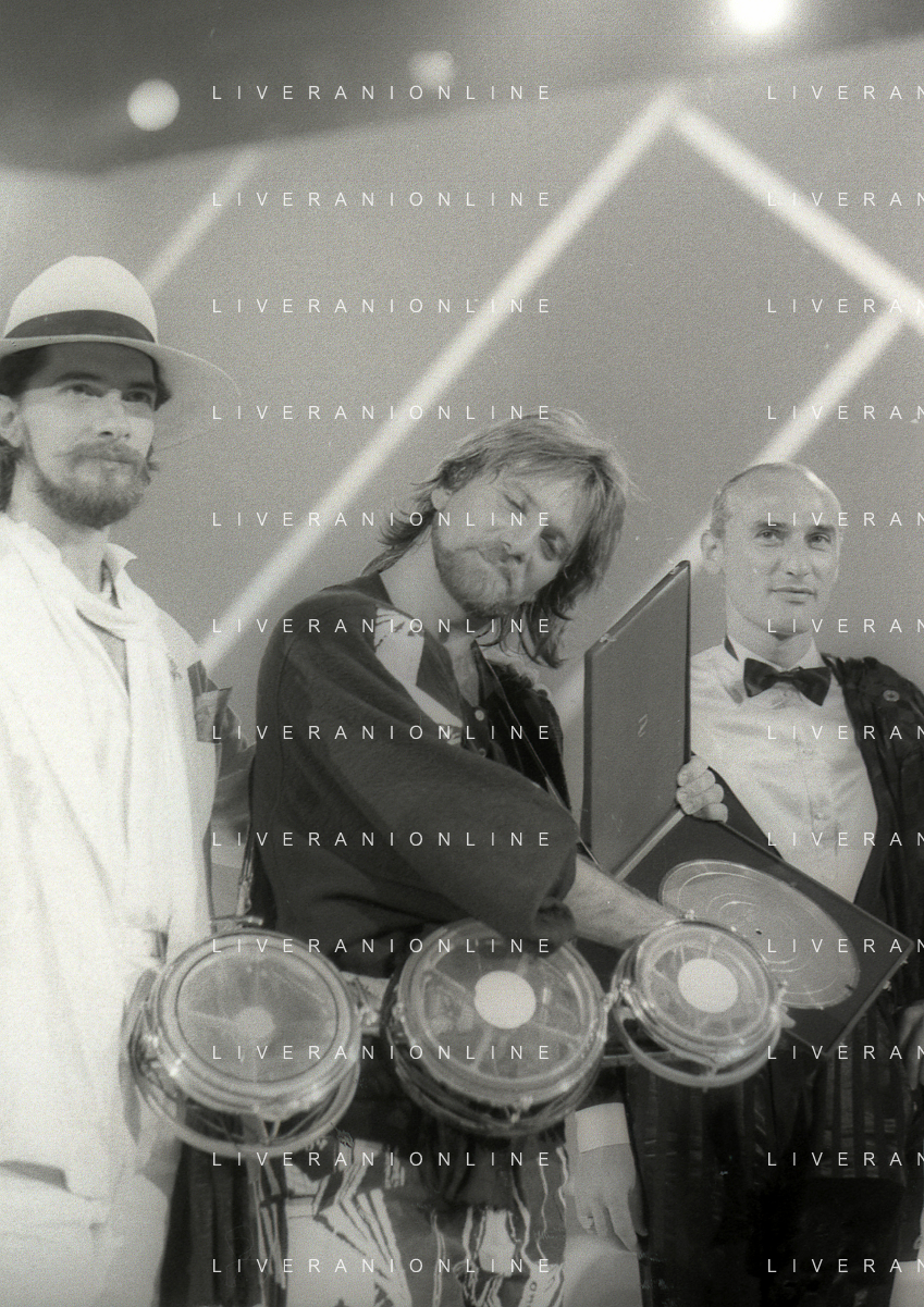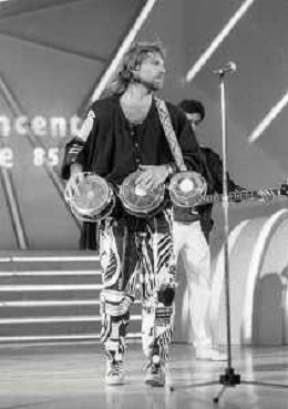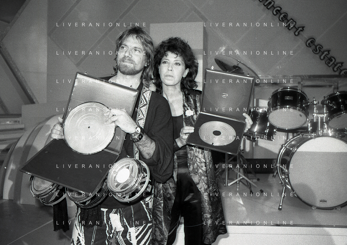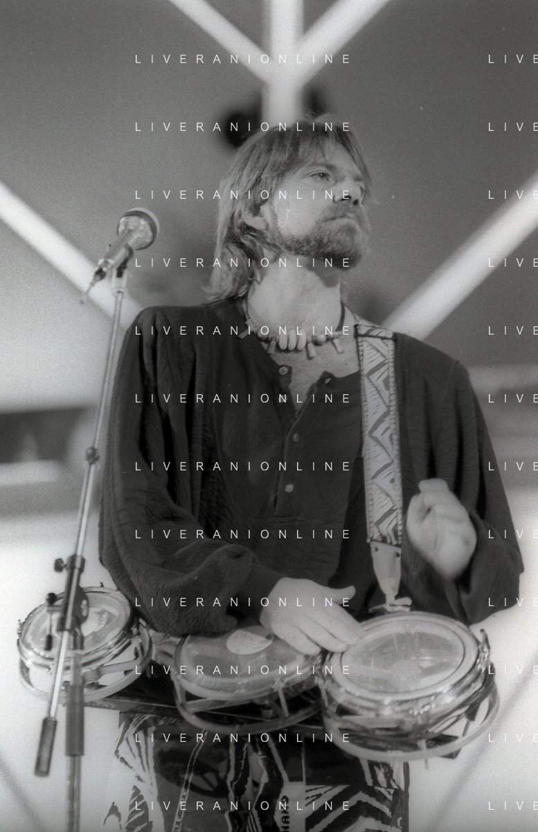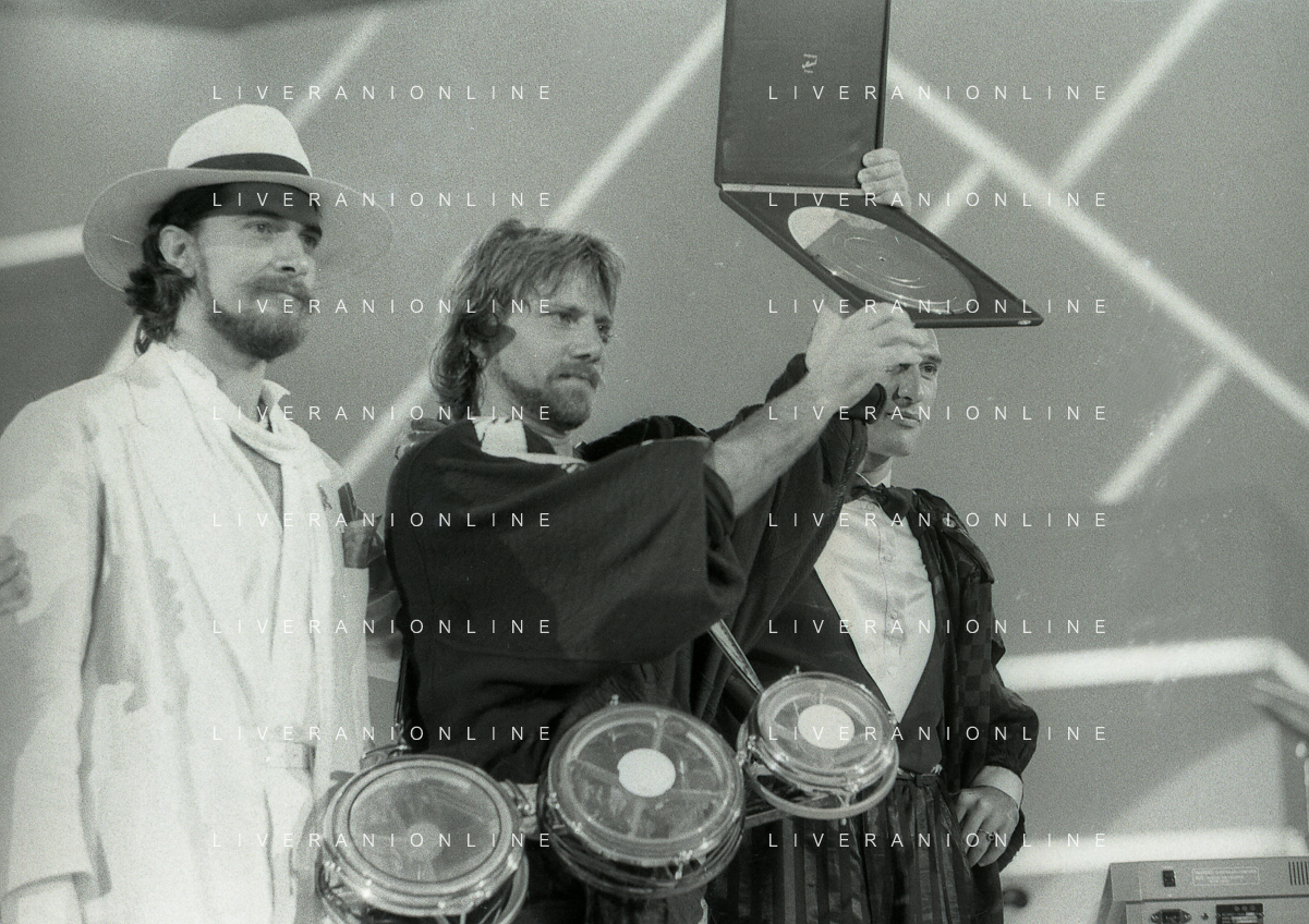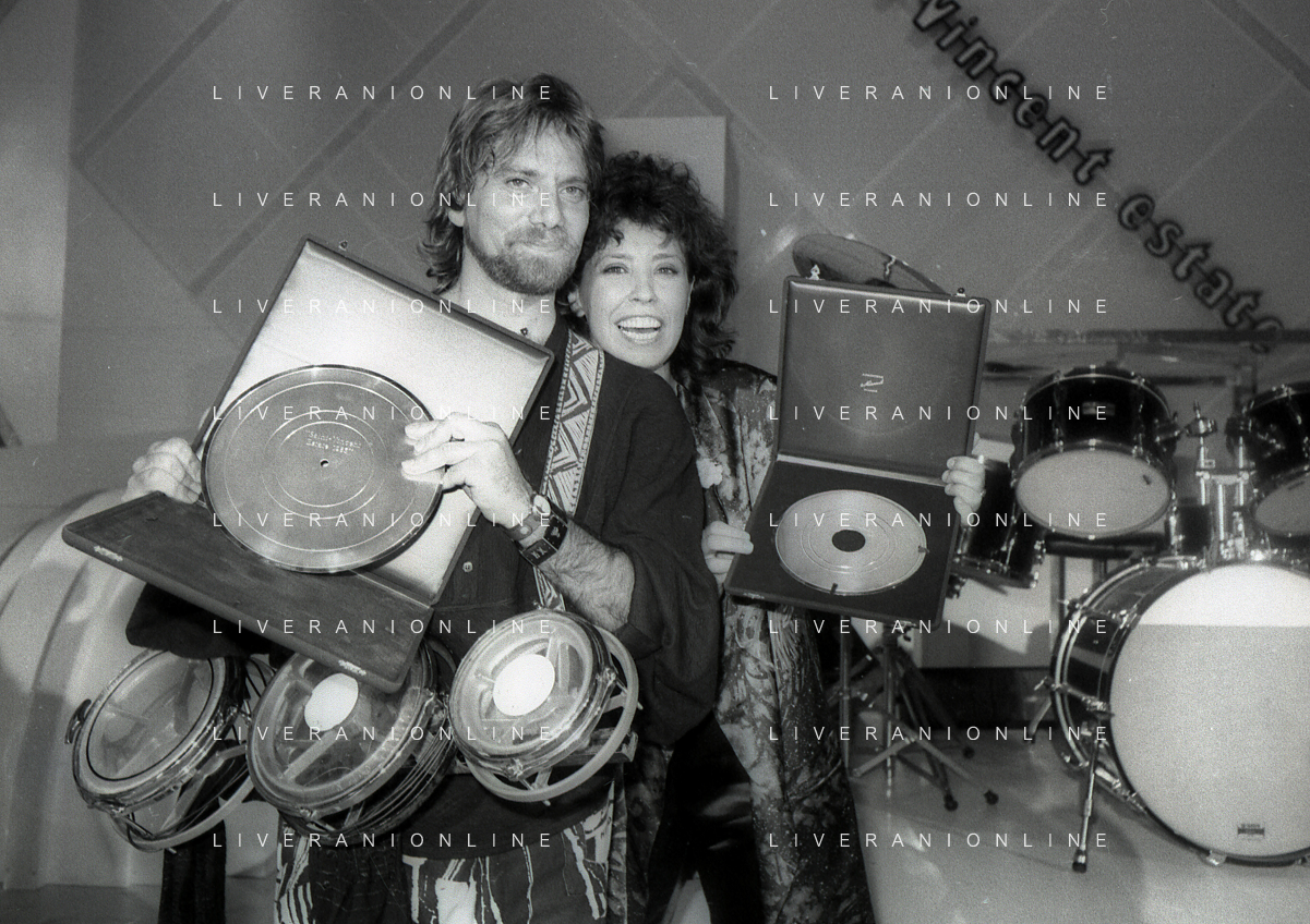 NEG-RETROSPETTIVA TONY ESPOSITO MUSICISTA-PERCUSSIONISTA E CANTAUTORE NELLA FOTO TONY ESPOSITO NELL'ANNO 1985 A SAINT VINCENT CON LU COLOMBO AG ALDO LIVERANI SAS