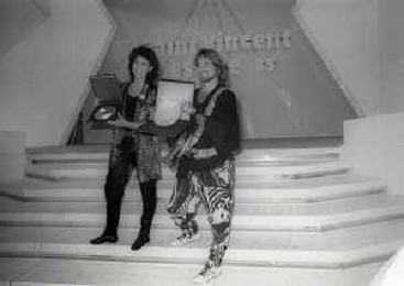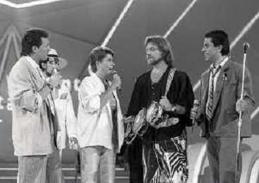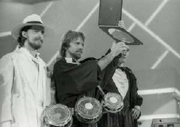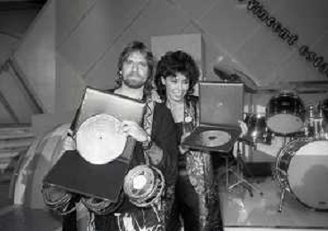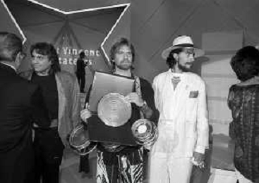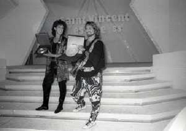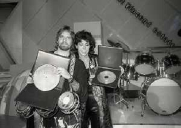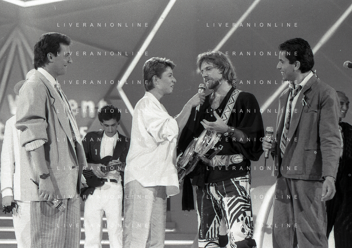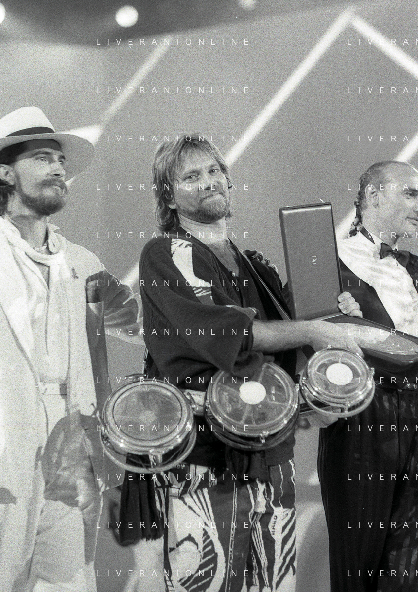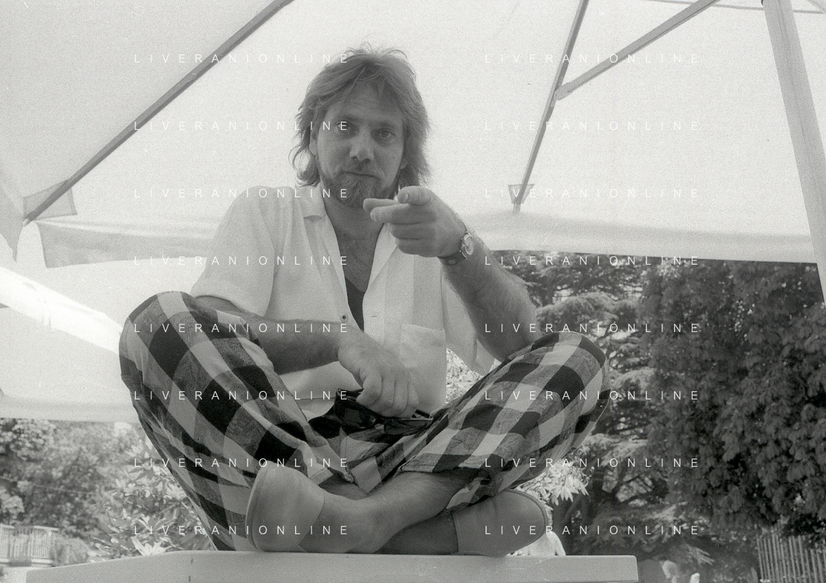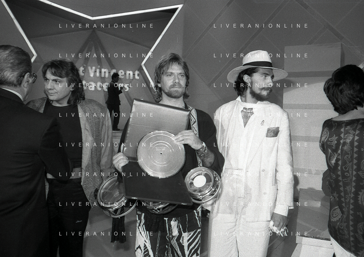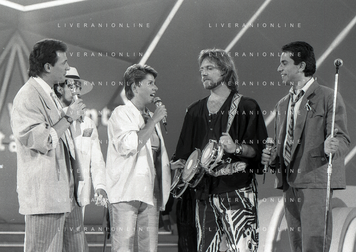 NEG-RETROSPETTIVA TONY ESPOSITO MUSICISTA-PERCUSSIONISTA E CANTAUTORE NELLA FOTO TONY ESPOSITO NELL'ANNO 1985 A SAINT VINCENT CON LU COLOMBO AG ALDO LIVERANI SAS